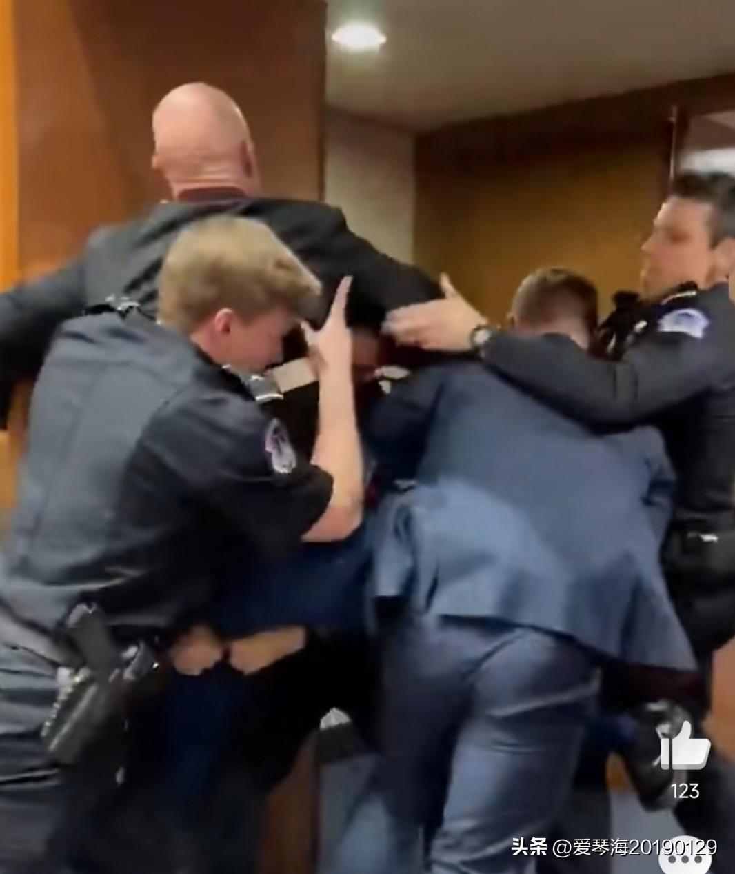 2026年3月4日,在美国国会参议院军事委员会战备与管理小组委员会的听证会上,美国海军陆战队老兵布莱恩·麦金尼斯起身高喊反战口号,反对美国卷入中东战争,他高呼:“美国人不希望他们的儿女为以色列而战!”、“没人想为以色列而战”、“我们不愿为以色列而死”。 现场多名警察立即上前要将其强行带离,但麦金尼斯身体强壮,三个警察都按不住他,当时有个叫蒂姆·希伊的共和党参议院也上前帮忙拖拽老兵麦金尼斯,最后老兵胳膊都被折断了,才将他带出听证会现场。现场目击者大喊“参议员打断了老兵的手”。 美国国会警察还是表示,麦金尼斯将面临三项袭警罪、三项拒捕罪和一项妨碍公共秩序罪。 这就是美国的“言论自由”!