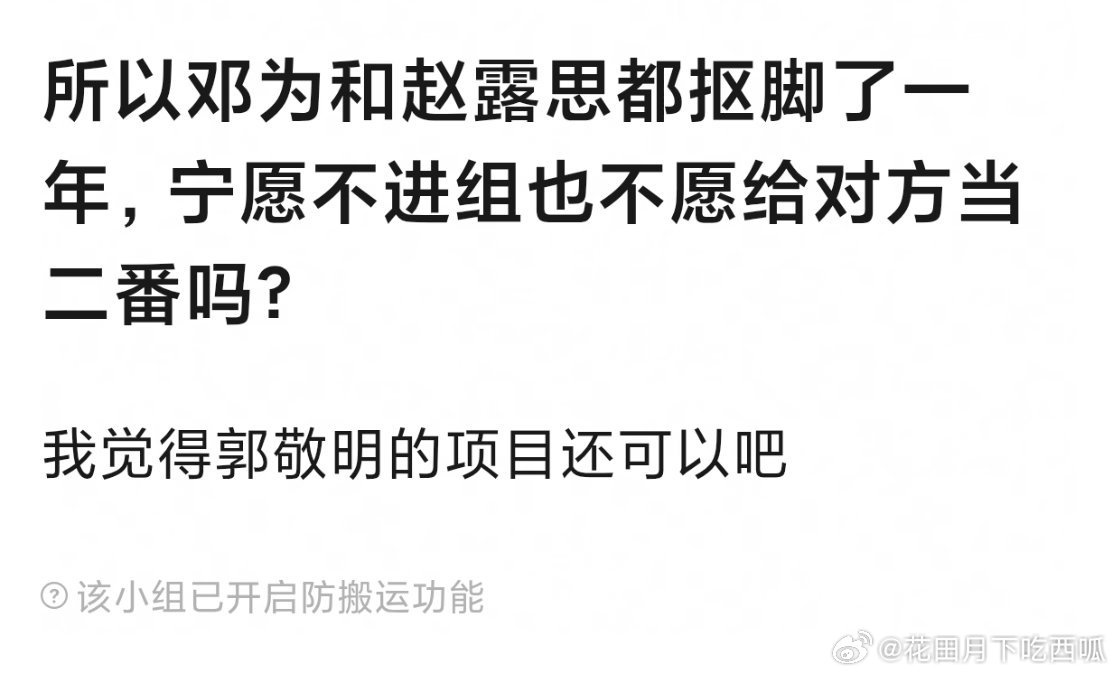网友说赵露思、邓为都在家待业了这么久,宁愿不进组也不愿意《百妖谱》给对方当二番/平番但是看郭敬明现在的态度,明显是小四在主动求合作吧?小四自从《云之羽》之后就没有有水花的剧,《月鳞绮纪》据说剧本一团浆糊,而且因为🍊和48的合约问题能不能播都是个未知数,现在急需开一部大流量剧回血了郭敬明发了邓为眼部特写