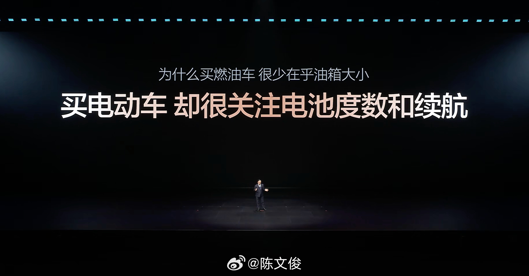 关键在于,新能源车的充电速度有限,大家对于电动车的续航、对充电时间还是有焦虑、有担心的,因此即使买新能源车,也会在乎油箱的大小,因为油能给电车兜底。