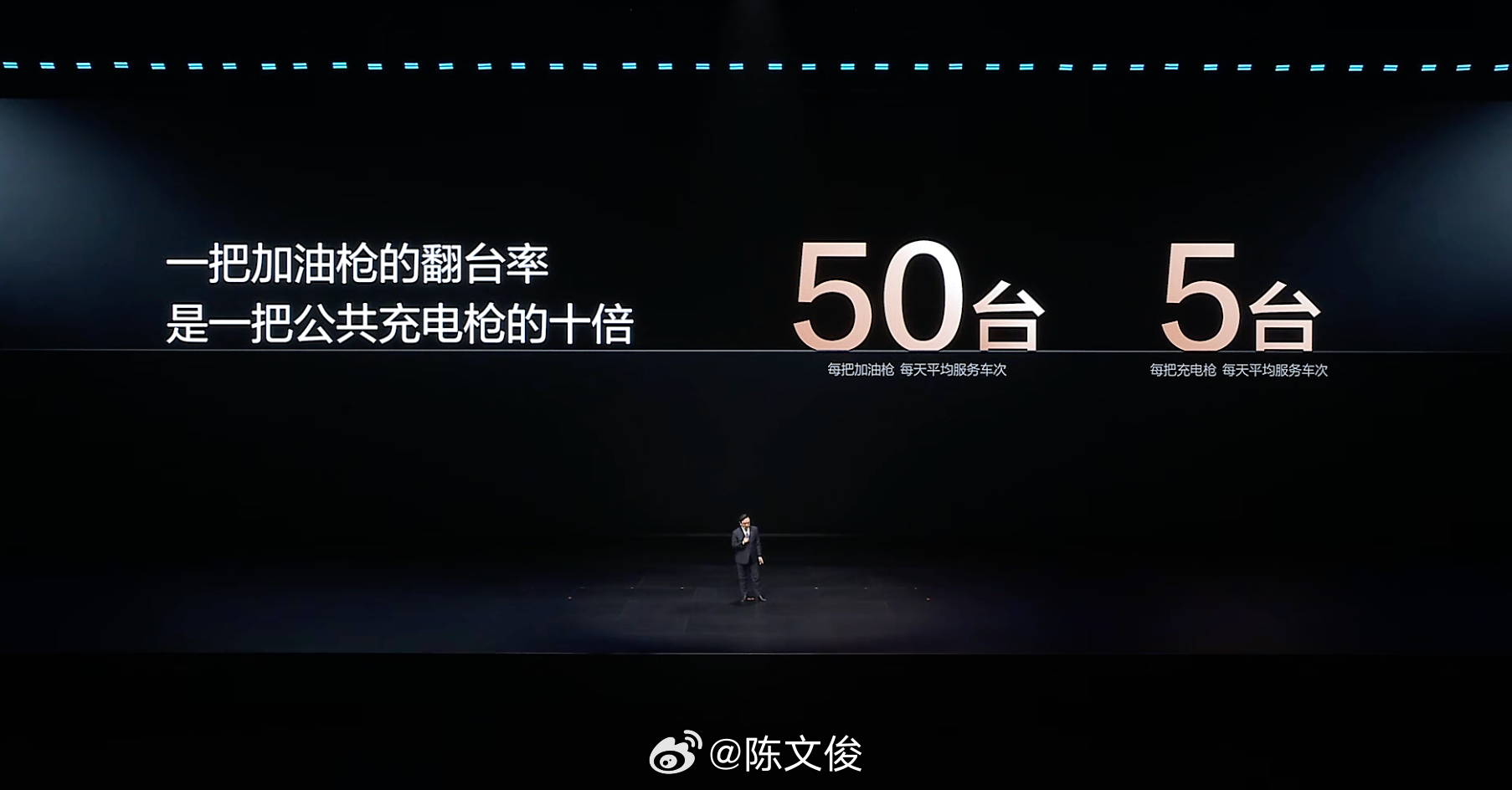 很明显,相比于加油效率,新能源车的翻台率只有加油的十分之一,在充电这方面还需要有更大的突破。
