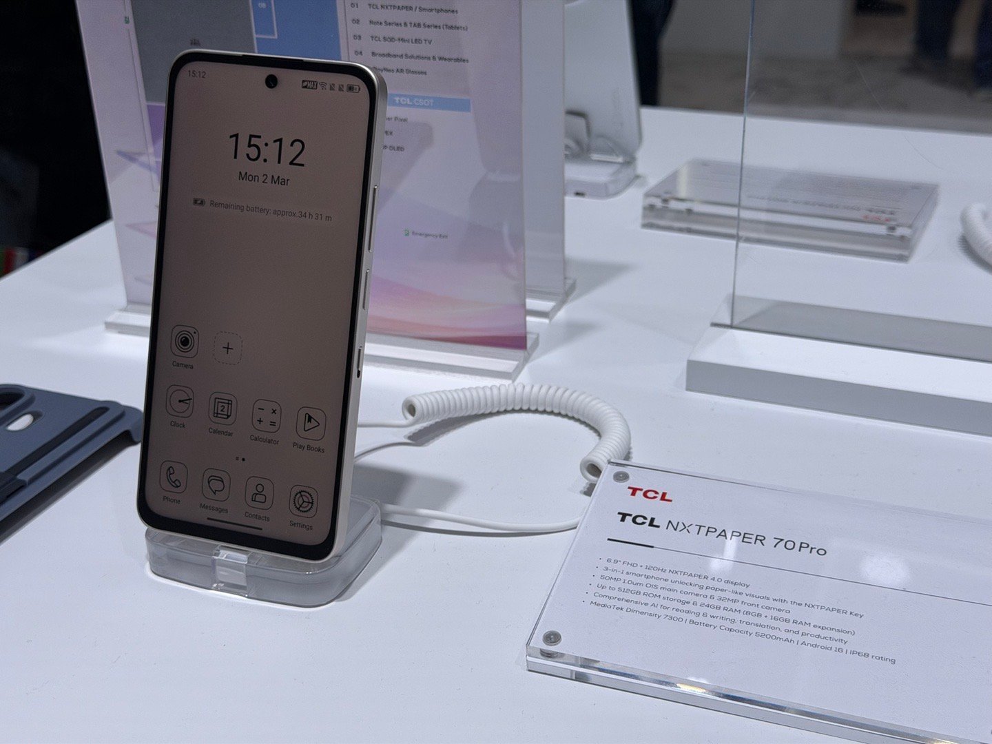 在mwc2026看到了TCL实业的展台,展示了很多国内没上的好东西,例如图1-3的这个手机,可以一键变成黑白电纸书,而且屏幕还是那种类纸的,显示效果很有意思,比较适合欧洲爱看书的那些人,图5-6是办公本,带触控笔,书写的震撼很仿真,而且AI做的也不错,做笔记和批阅都相当好用。图7国内有,98英寸的X11L电视,SQD-mini LED,显示效果特别好。图8-9也一些主要的产品,平板 网络设备 还有雷鸟眼镜,今年骁龙展台的AI眼镜区域也是用的雷鸟演示。