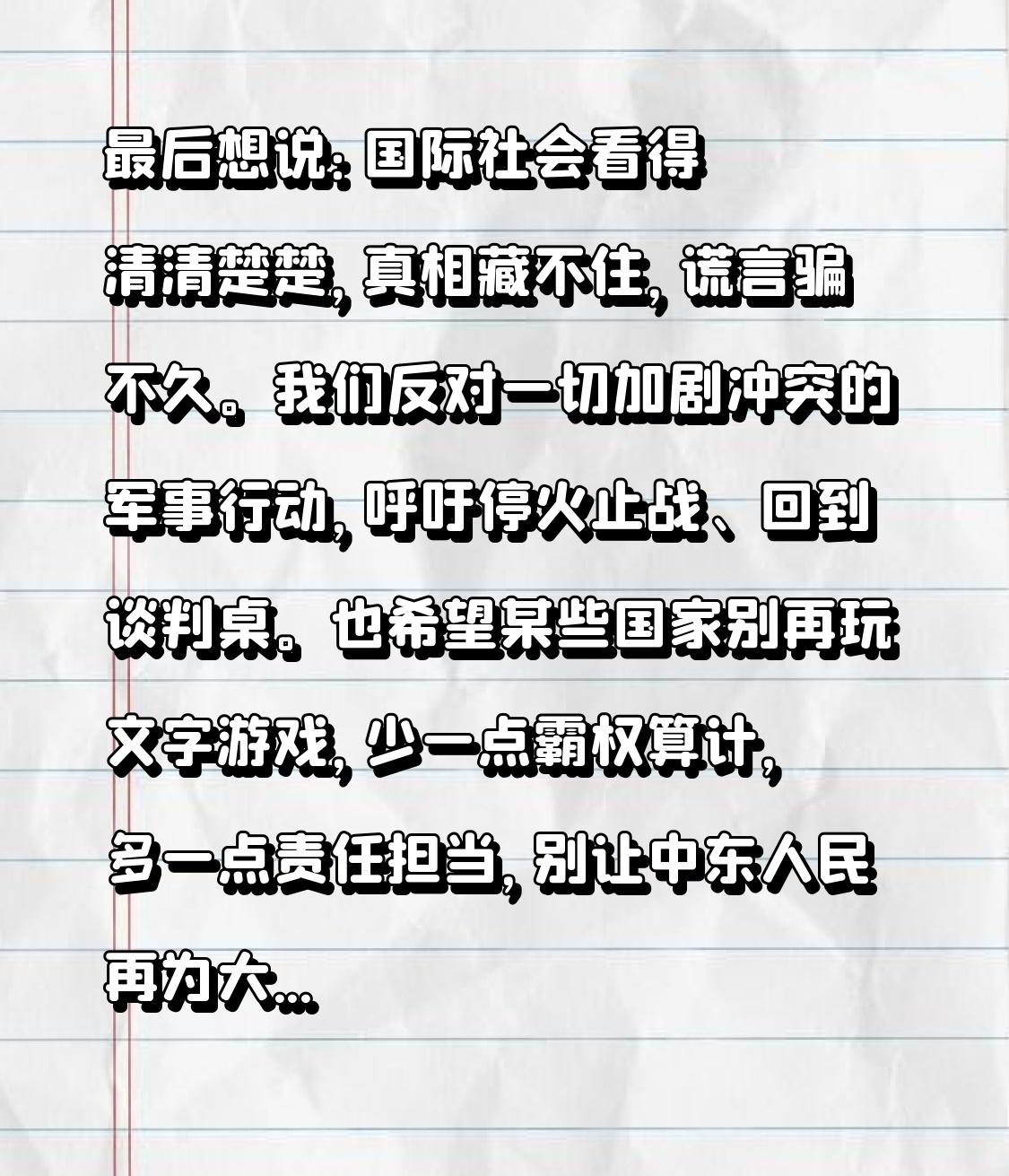 白宫急着撇清:袭击伊朗跟以色列没关系?真相打脸,全世界都看明白了! 家人们,中东这出大戏越演越离谱!白宫突然公开表态:美国决定袭击伊朗,完全没受以色列影响,是我们自己做的主!这话一出来,国际舆论直接炸锅,到底是独立决策,还是欲盖弥彰?今天咱们把来龙去脉扒得明明白白。 就在几天前,美以联手对伊朗发动大规模空袭,伊朗高层遇袭、军政设施遭重创,中东瞬间滑向全面冲突边缘。全世界都看得清楚:美国和以色列步调高度一致,情报共享、行动协同,简直是“一个鼻孔出气”。可白宫偏偏要划清界限,说动武决定是美国独立做出,以色列没插手、没施压、没影响。 但打脸来得太快!多家权威媒体曝光:袭击前,以色列总理直接把伊朗高层精准行程情报送给美方,正是这份关键信息,让美军确定了打击时间与目标。白宫发言人也没否认,只含糊说“情报只影响时机,不影响决定”。这话谁信?没有以色列的核心情报,没有长期的安全捆绑,美国会在这个节点贸然动手? 更有意思的是,美国官方说辞前后矛盾。国务卿说“怕以色列动手连累美军,所以先发制人”;总统又说“是我推动以色列动手,伊朗要先攻击我们”。一边撇清关系,一边又暴露联动,这种左右互搏的表态,反而坐实了美以深度绑定的事实。 说白了,美国这波“撇清”,无非是想降低国际压力,避免被骂“被盟友拖入战争”,同时维持大国体面。可明眼人都知道,中东局势里,美以从来都是一体的,安全利益高度捆绑,军事行动默契配合,所谓“不受影响”,更像一场公关表演。 战争从来不是儿戏,每一次空袭、每一枚导弹,背后都是普通百姓的流离失所,是地区稳定的彻底崩塌。美国把责任摘得干净,可战火带来的苦难,不会因为几句声明就消失。中东的和平,不是靠军事打击能换来的,更不是靠大国撇清关系就能实现的。 最后想说:国际社会看得清清楚楚,真相藏不住,谎言骗不久。我们反对一切加剧冲突的军事行动,呼吁停火止战、回到谈判桌。也希望某些国家别再玩文字游戏,少一点霸权算计,多一点责任担当,别让中东人民再为大国博弈买单! 你觉得美国袭击伊朗,真的和以色列没关系吗?评论区聊聊你的看法。