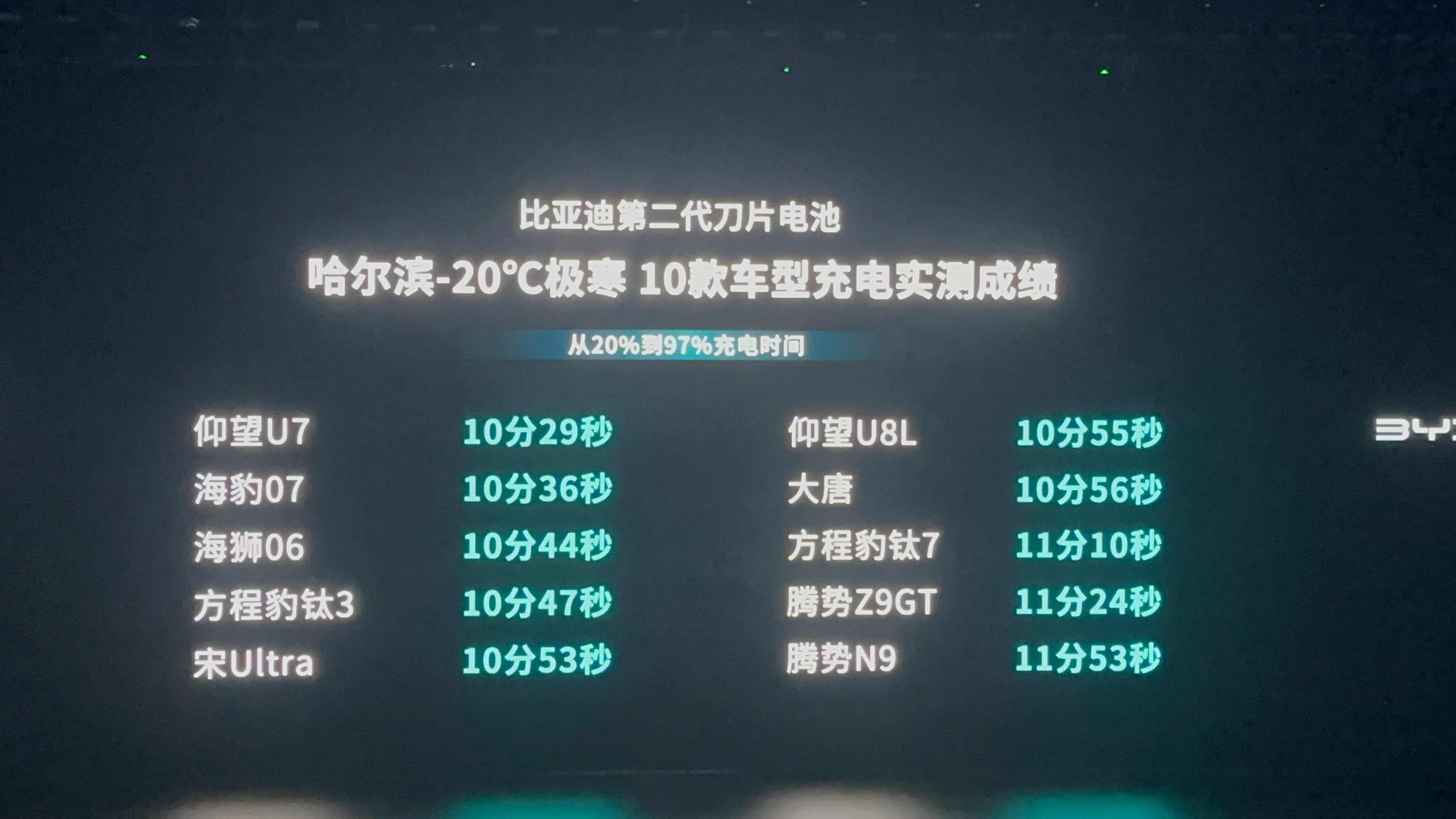 【比亚迪闪充——5分钟充好,9分钟充饱,零下30℃,只多3分钟】零下20℃实测,10款车型从20%到97%充电全部低于12分钟;零下30℃冷冻24小时,充电仅比常温多3分钟! 比亚迪闪充充饱只用9分钟