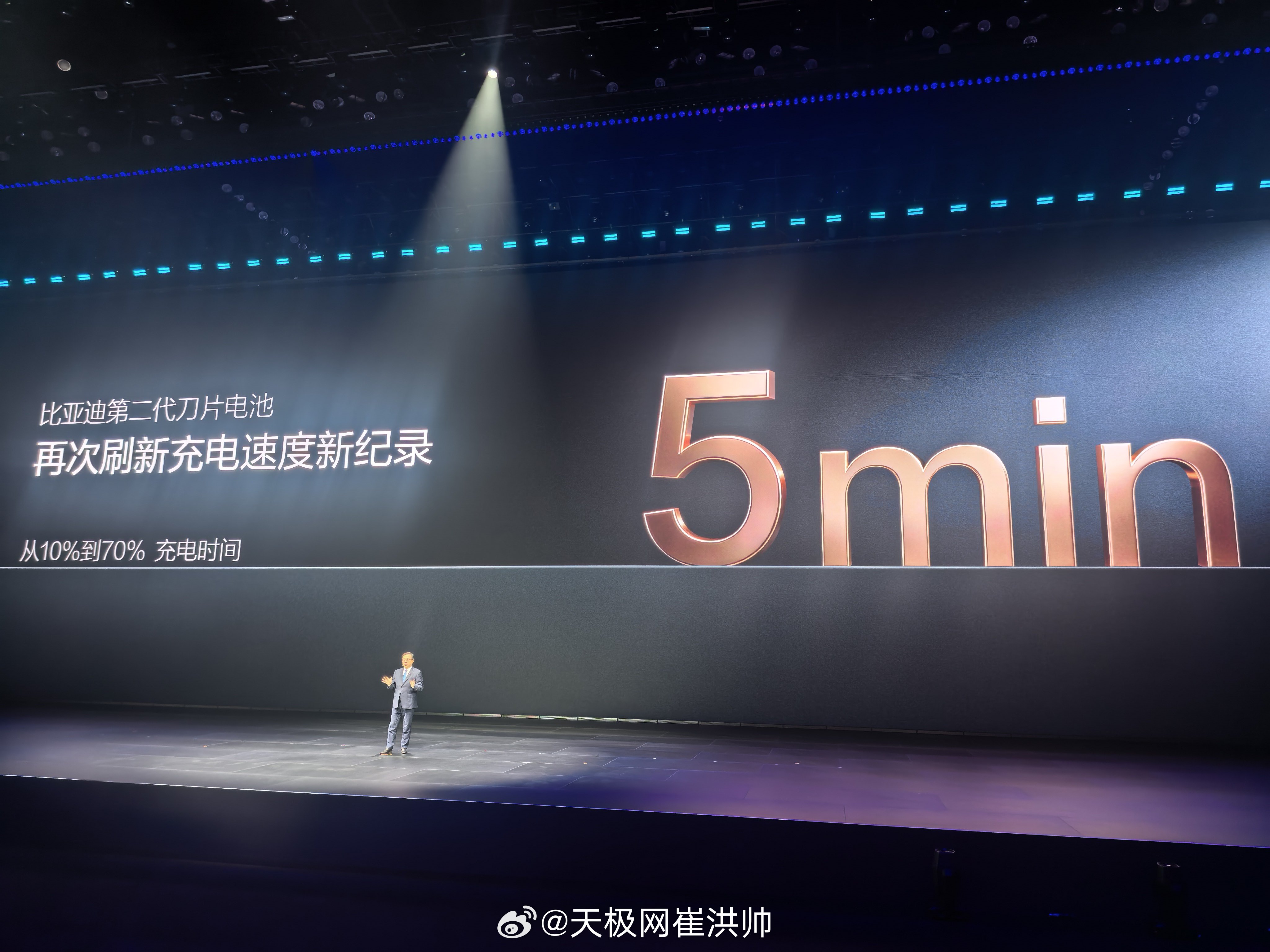 留给燃油车的时间不多了!!! “5分钟充好、9分钟充饱”,比亚迪第二代刀片电池从10%充到70%,仅需5分钟;从10%充到97%,仅需9分钟,真正实现“油电同速”。
