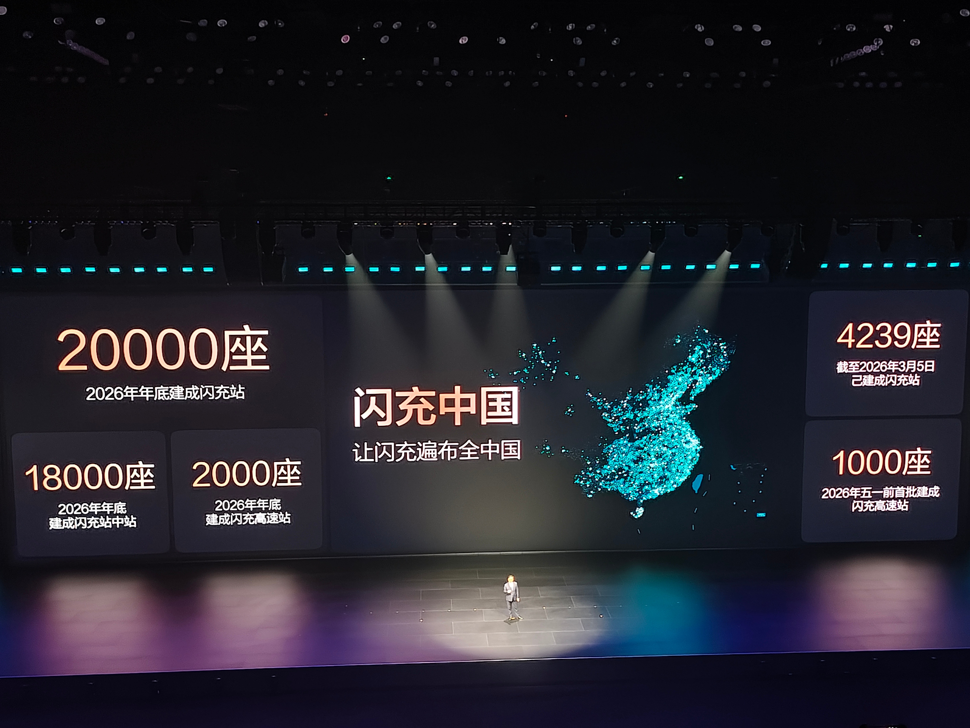 其中高速2000座,每隔100公里就有闪充桩,2026年五一前,首批建成1000座闪充站。