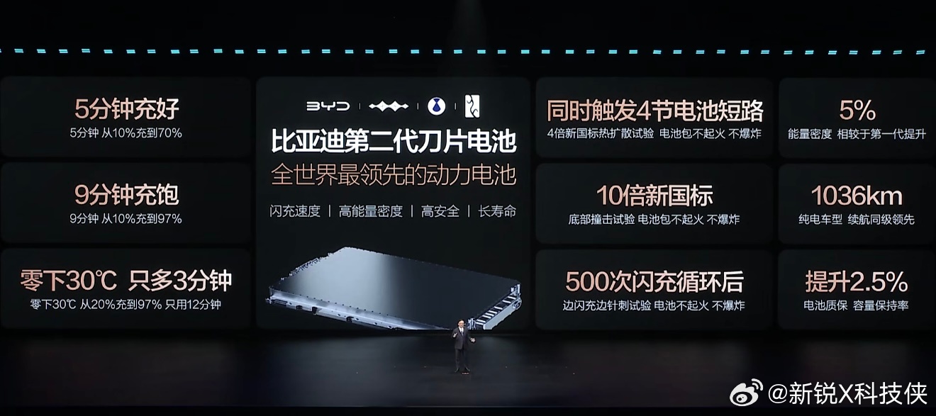 仰望汽车26款闪充焕新升级比亚迪第二代刀片电池及兆瓦级闪充技术将于今晚正式对外发布,宣告纯电动车迈入“5分钟补能400公里”时代,“电比油强”、“油比电快”的时代正式来临。