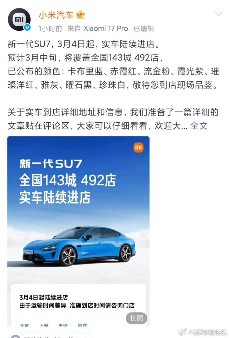 雷军说新SU7进展顺利一两个月上市之前还在猜新SU7要等多久,结果雷总直接给了答复:一两个月就能上市,而且上来就能大规模交付。