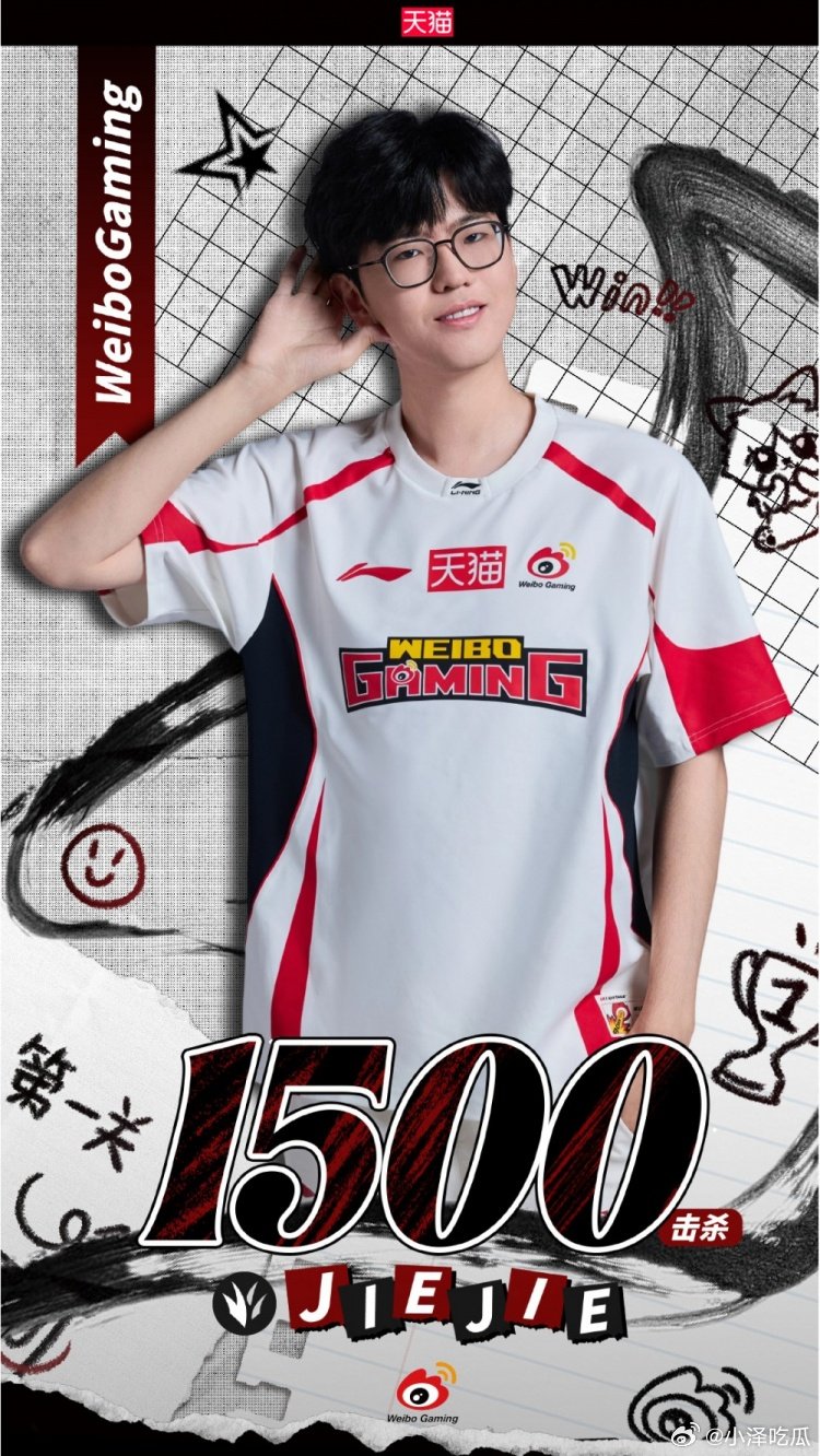 WBG官方:jiejie达成第1500次击杀 LPL第35位选手