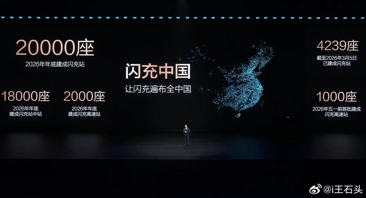 2026年,比亚迪将建设2万座闪充站,包括: 1.8万闪充站中站,安装像装空调一样简单,90%的城市,5公里内就有。 2000座高速公路闪充站,平均每100公里就有闪充站。 目前已建成4239座闪充站,五一之前建设1000座闪充高速站。 推出“圆梦建站”计划,一周内建成,用户需求在哪里,站就建在哪里。 所有搭载第二代刀片电池的闪充车车主,赠送1年免费闪充权益。 比亚迪闪充站,向全社会开放共享。 比亚迪今晚发布二代刀片及闪充