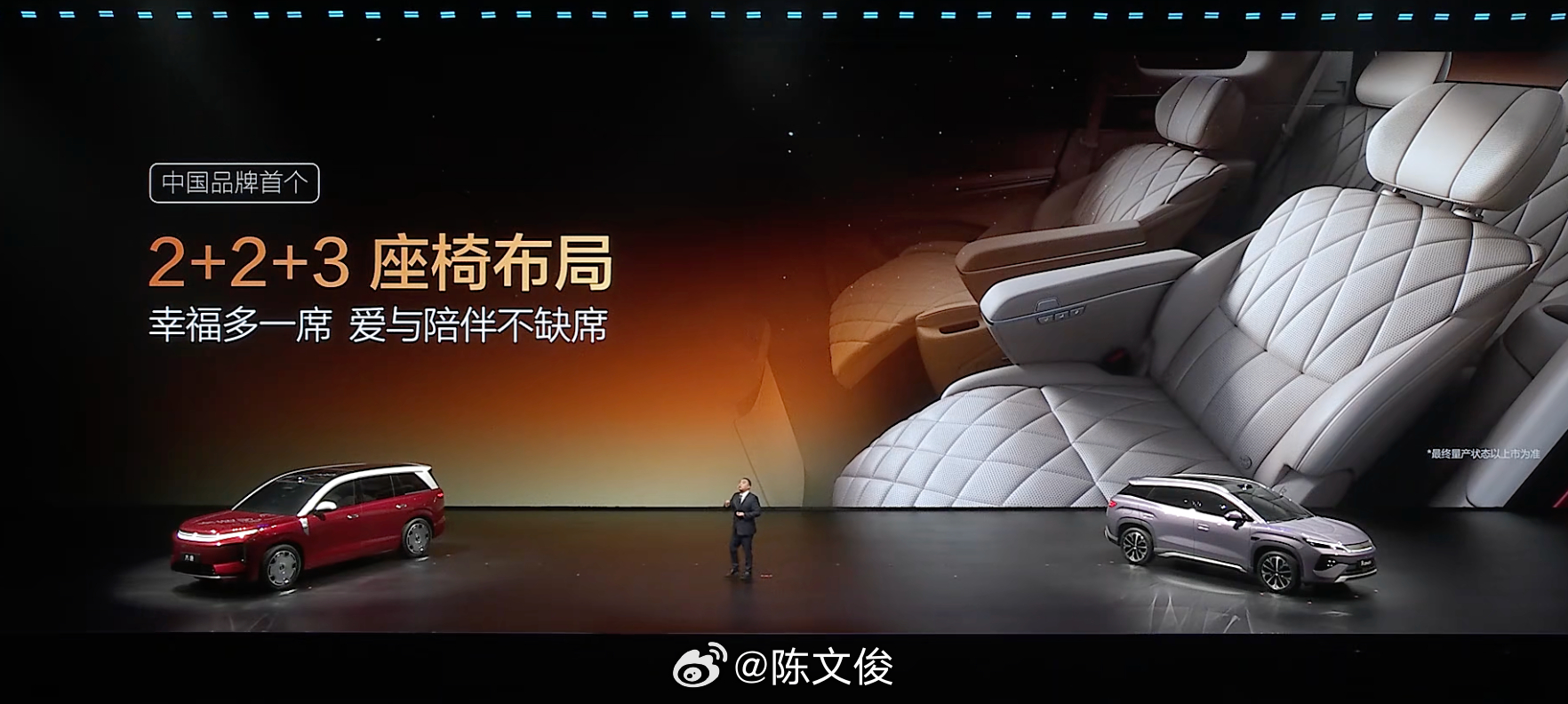 「大唐」这辆车有意思的地方在于,这车内部是2+2+3的布局,7座车来的。