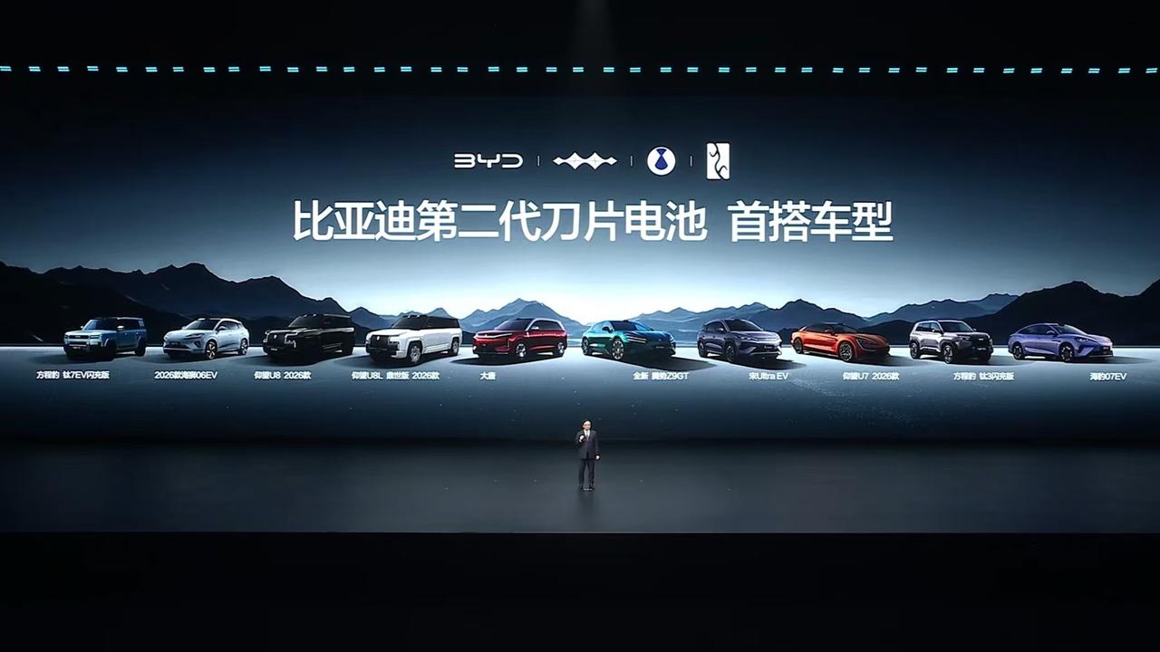 比亚迪发布第二代刀片电池,slogan是“5 分钟充好,9 分钟充饱”,这下充电要和加油一样快了[奸笑] 5 分钟 10%-70%,9 分钟 10%-97%,零下 30 度只需要多充 3 分钟; 第二代刀片电池首搭十款车型(具体见图3); 并计划在 2026 年底建成 2000 座高速充电站,五一前建成 1000 座高速闪充站;赠送闪充车车主 1 年免费闪充权益。