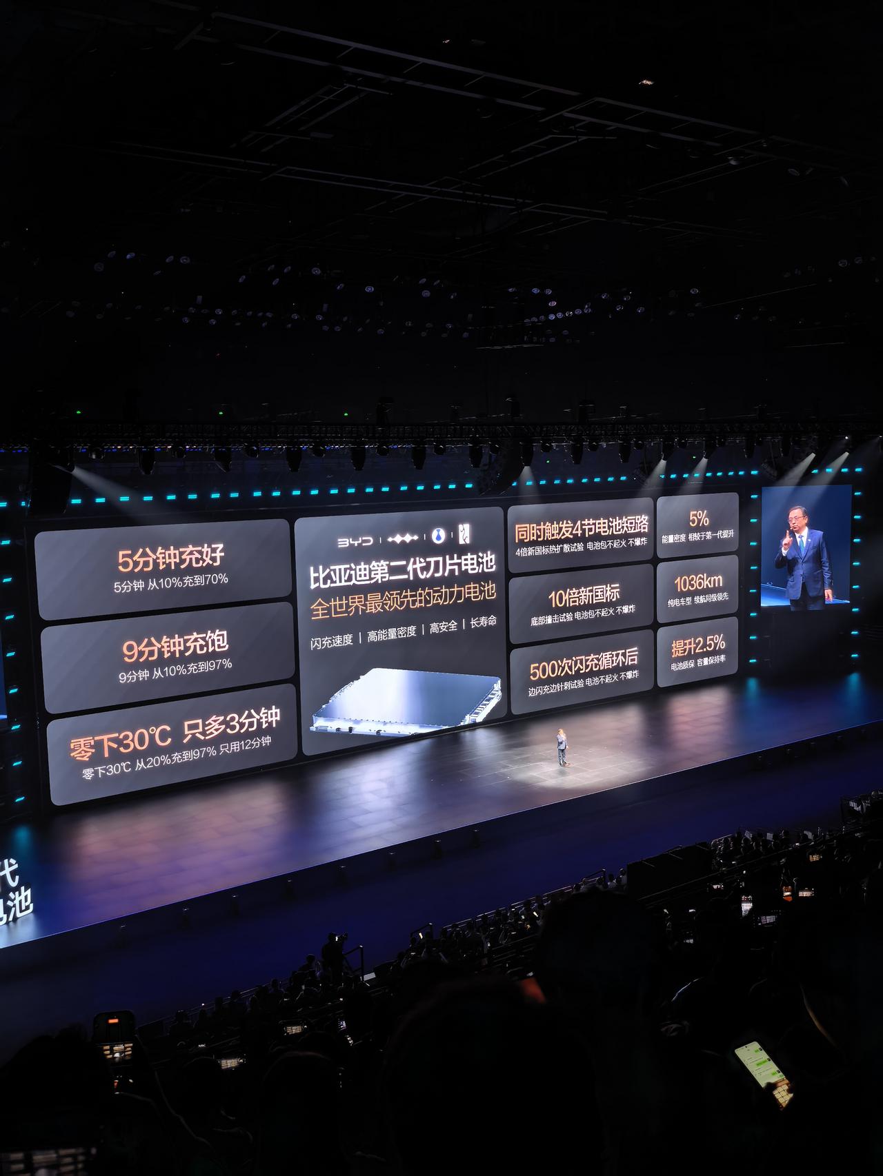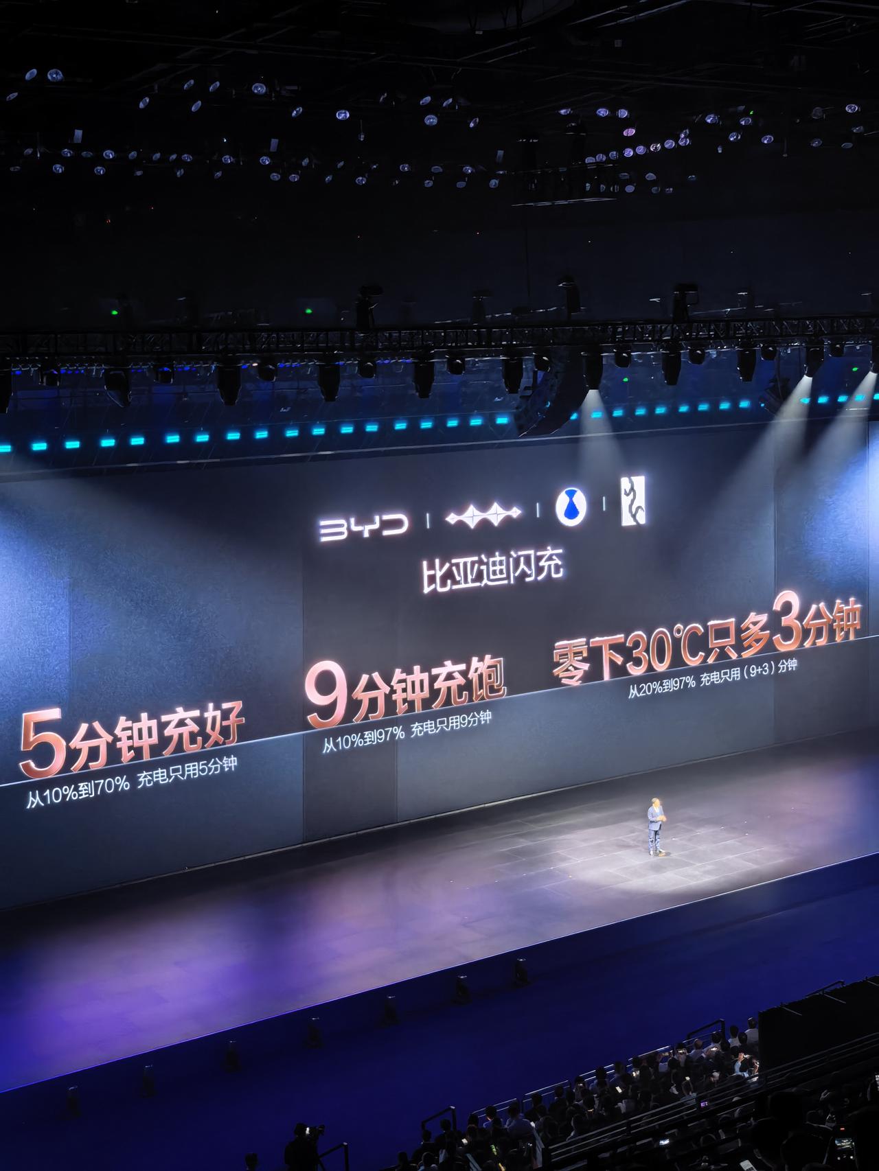 在夸大营销的大环境下,比亚迪前几天说有颠覆性技术发布时,我是半信半疑的。 但今晚在现场被打脸了!不是营销,不是PPT,全是硬货——第二代刀片电池+超级闪充,算是完美解决了现在电动车补能焦虑。 最炸的就是闪充速度:10%冲到70%只要5分钟,10%到97%仅需9分钟,几乎跟加油差不多快。 就算-30℃冬天,20%充到97%也只要12分钟,低温掉电慢、充电慢的痛点,也一次性解决了。 这而且并不是单点提速,而是全链路闪充解决方案:更高电压平台、更强热管理、还有仅2公斤轻量化液冷枪,单手可操作,滑轨式移动,对女士特别友好。 关键是,普通充电桩加装比亚迪储能柜后也能变闪充站。储能柜像“超级充电宝”,低谷储电、高峰放电,单柜储电200度,双柜400度,不用大改电网,就能稳定输出大功率。公共桩兼容后,速度比将提高30%-50%,提效节能,这个方案太绝了! 这背后是比亚迪多年死磕技术,工程师精神的结晶! 可以说,在固态电池真正普及前,比亚迪用第二代刀片电池和闪充,把液态电池的潜力挖到了极限,几乎解决了液态电池所有难题!