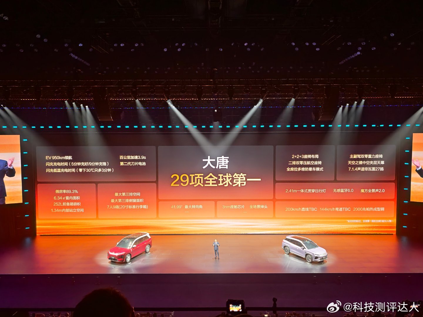 大唐EV续航直接拉到950km!近5.3米车长、轴距超3米,最小转弯半径仅5.2米,2+2+3七座布局,王朝销售总经理路天都说,车内空间相当于香港一间主卧。还有29项全球第一,家用旗舰直接拉满。