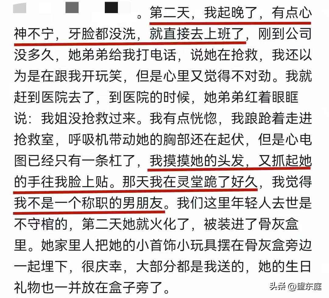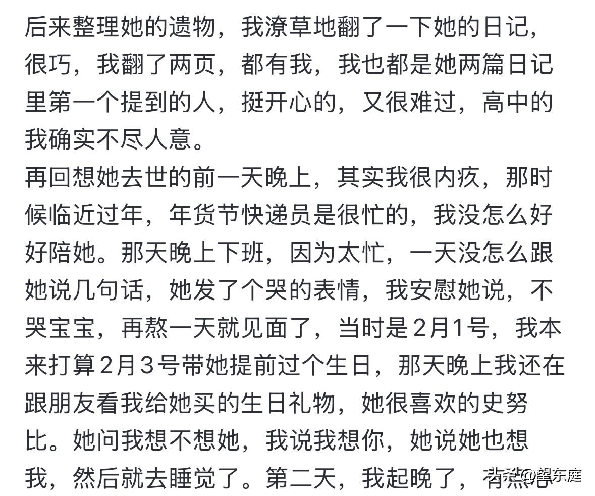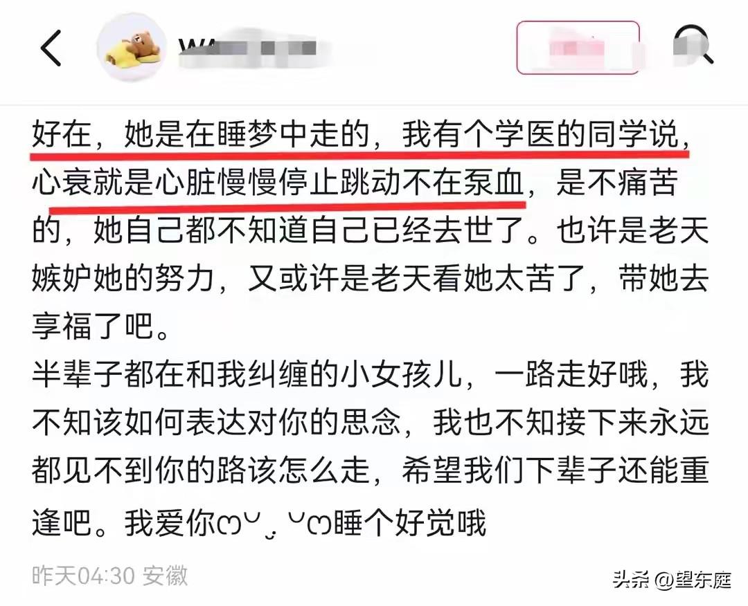 泪目!如此年轻漂亮的一个女孩,居然在睡梦中就离世了。她才24岁啊,离世前一天晚上还在和男朋友聊天。明明只差一天就是他们见面的日子了,然而,还没等到那天的到来,二人就阴阳相隔了! 这个女孩是安徽人,名叫程雨婷,她很可爱,性格非常温和。 她和男朋友是高中同学,二人从2018年就认识了。成年后,他们顺理成章走在了一起。 这么多年了,她们的感情始终美好、纯真,没有一丝杂质,彼此都在为以后的生活而打拼。 在这个新年前夕,因为雨婷男朋友的工作很忙,所以,她们在一起的时间并不多。 2026年2月3日,是两个人约好见面的日子,男朋友在2月1日晚上就悄悄的买好了生日礼物,想要在见面那天给她提前庆祝。殊不知,雨婷再也等不到那一刻的惊喜了。 悲剧发生在2026年2月2日。 当天一早,男朋友就接到了雨婷弟弟打来的电话。对方告知他,雨婷被送进了医院抢救。等他急匆匆赶到的时候,雨婷已经离开了。如此相亲相爱的两个人,却连最后一面都没有见到。 事实上,在前一天晚上,她们还在社交平台上聊天,当时雨婷告诉男朋友说自己很想他。短短几句话过后,彼此就都下线休息了。可没想到,这竟是她们此生最后的交流! 年仅24岁的雨婷就这样离开了,急性心肌炎引发的心衰就这么将她带走了。 她那么年轻,那么漂亮,那么努力,结果,却在睡梦之中离开了。在这个事情里,最让人心疼的是:事情发生的太突然了,连她自己都无法预料,以至于在生命的最后,连一句话都没有给家人、爱人留下。 雨婷离开后,她的男朋友沉浸在悲伤中无法自拔!这么多天里,他一直在自己的社交账号里讲述他们的点点滴滴。 多好的一对恋人啊!只可惜,他们此生再也不能相见了。如此种种,实在是让人倍感痛心! 希望大家都要好好爱惜自己的身体,一旦发现身体不适,千万不要硬扛,一定记得及时就医。[祈祷][祈祷][祈祷]在此,愿大家都要好好的,也愿所有真心相爱的人终成眷属!