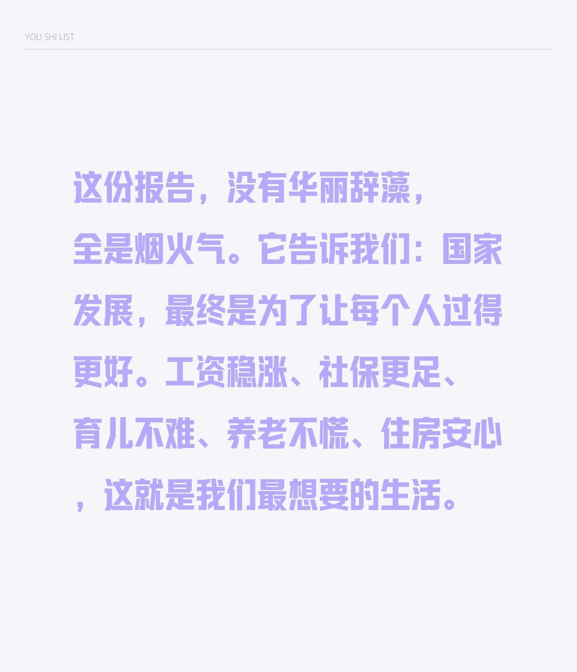 2026政府工作报告!全是民生大礼包,每一条都和你钱袋子有关 刚刚,2026年政府工作报告正式出炉!全网沸腾:这不是冰冷的文件,是写给14亿中国人的“幸福清单”!从工资、社保、育儿、养老到住房,全是实打实的利好,今天这条视频,用最接地气的话讲透,看完你就知道今年日子会有多甜! 很多人觉得政府报告离自己很远,全是数字和术语,大转折来了!今年报告彻底变了,不讲空话、不画大饼,每一项都扎进老百姓最关心的地方:涨收入、提社保、减负育儿、稳房价、保就业,把“民生”两个字写到了极致。 今年GDP目标定在4.5%—5%,不盲目冲高速,只求稳健提质,让大家的钱袋子和经济同步涨。城镇新增就业1200万人以上,毕业生、农民工、灵活就业者都有托底,再也不用怕找不到工作。 最让人暖心的是“一老一小”大福利:基础养老金每月再提高20元,医保补助再涨24元,让老人看病养老更有底气;3岁以下婴幼儿每年补贴3600元,弹性工作制、普惠托位全面铺开,年轻爸妈不用再为带娃崩溃。 还有大家最关心的房子:推进现房销售,所见即所得,从根源防烂尾;老旧小区改造、加装电梯、口袋公园继续加码,住老房子也能享新幸福。2500亿特别国债支持家电以旧换新,帮你花小钱换新生活。 AI、低空经济、量子科技、6G全面发力,新产业带来新岗位,普通人也能搭上发展快车。农村土地承包期再延30年,农民吃下定心丸,乡村越来越美、日子越来越富。 这份报告,没有华丽辞藻,全是烟火气。它告诉我们:国家发展,最终是为了让每个人过得更好。工资稳涨、社保更足、育儿不难、养老不慌、住房安心,这就是我们最想要的生活。 2026年是“十五五”开局之年,好政策已经铺路,好日子就在眼前。愿我们都能抓住红利,安居乐业,岁岁安康,共同奔赴更有盼头的新生活!