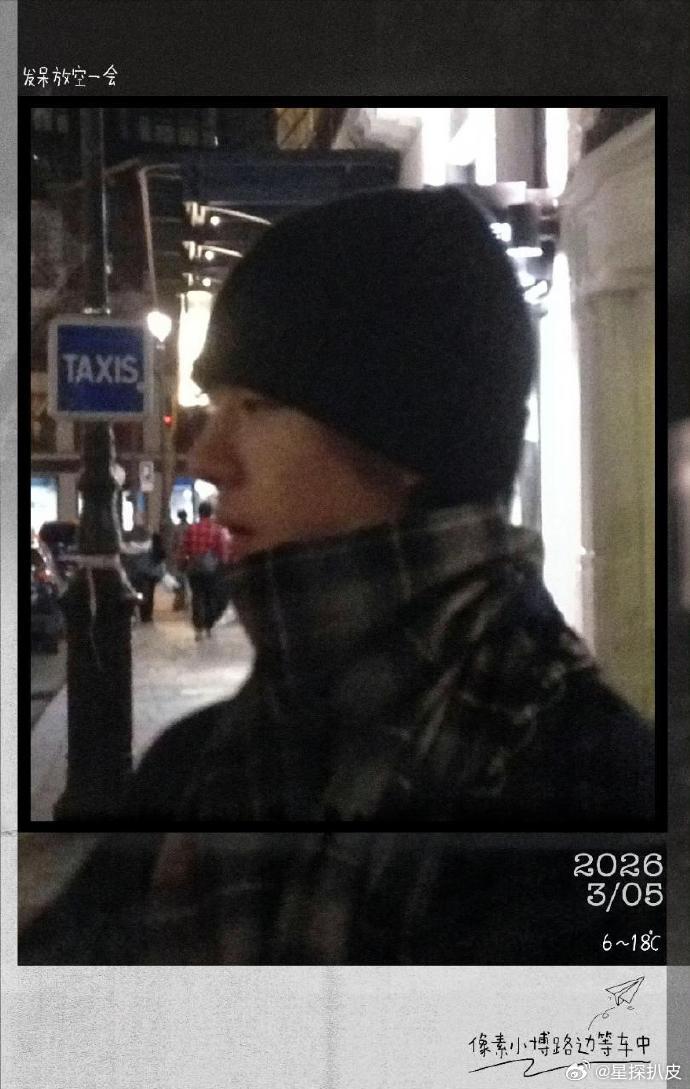 时装周巴黎时装周王一博LOEWE格纹围巾叠搭黑色外套,帽子一戴低调有型,又酷又
