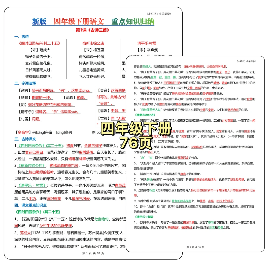 四年级下册丨语文考点重点知识全吃透