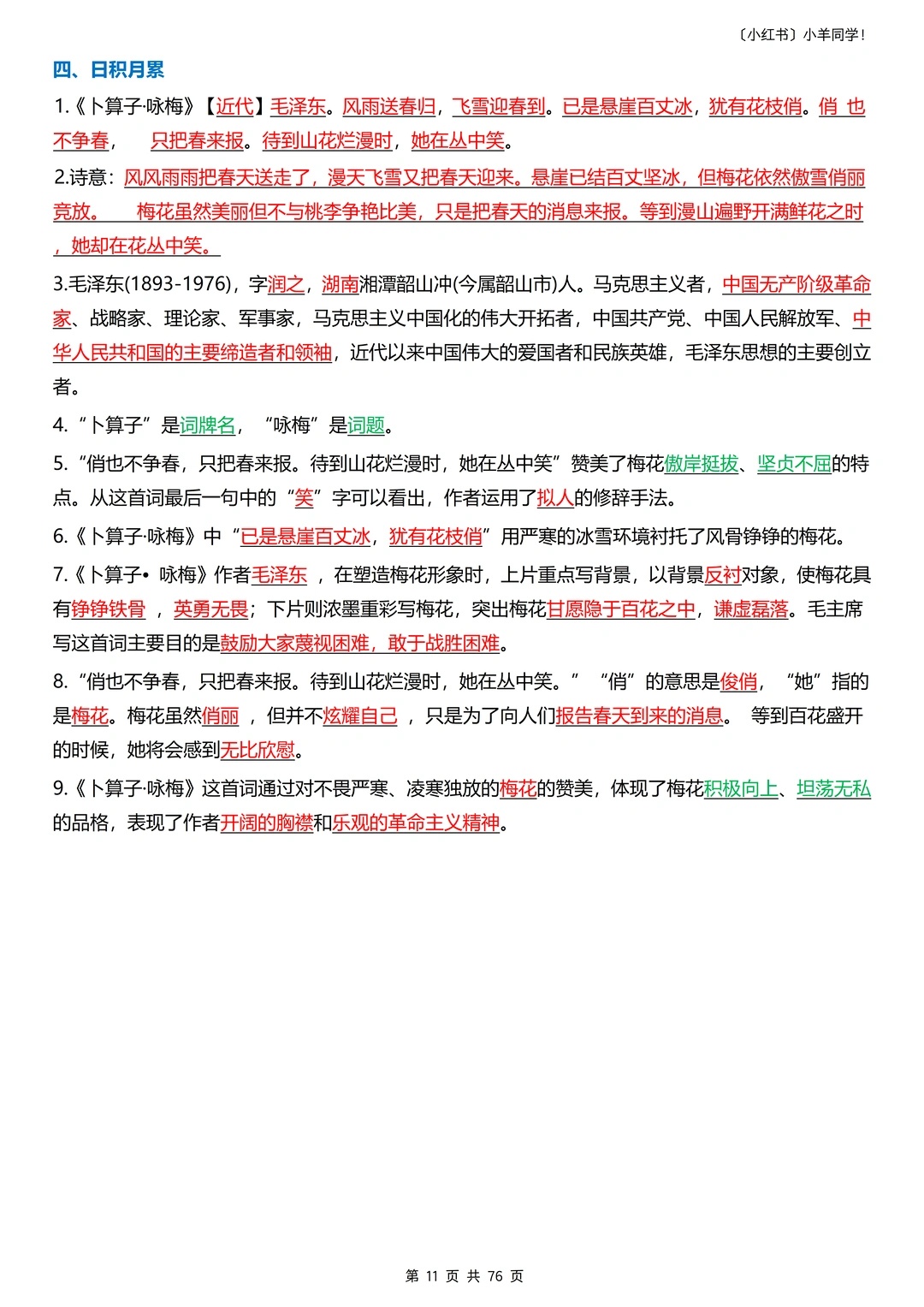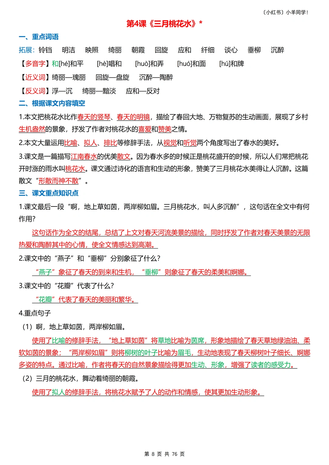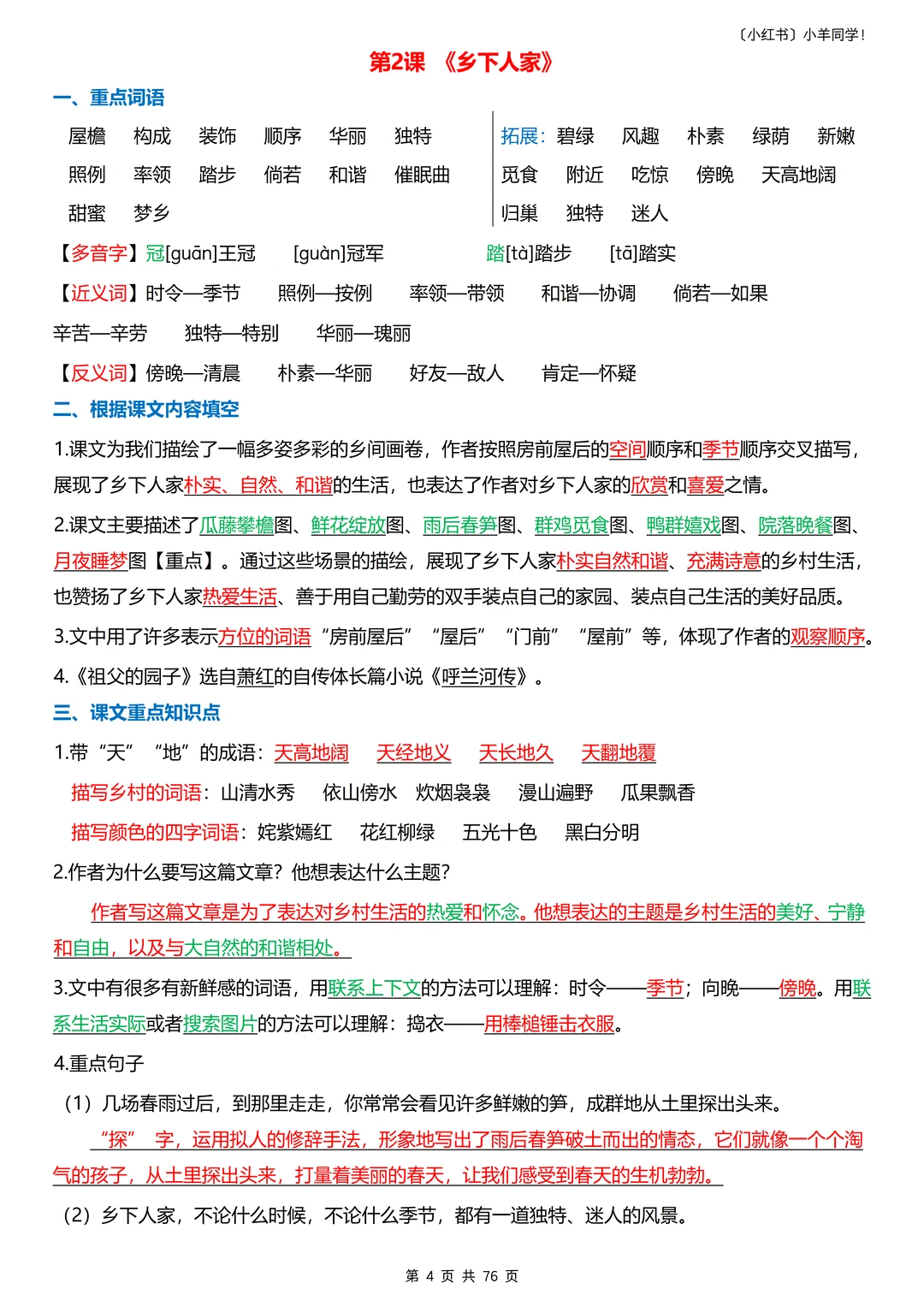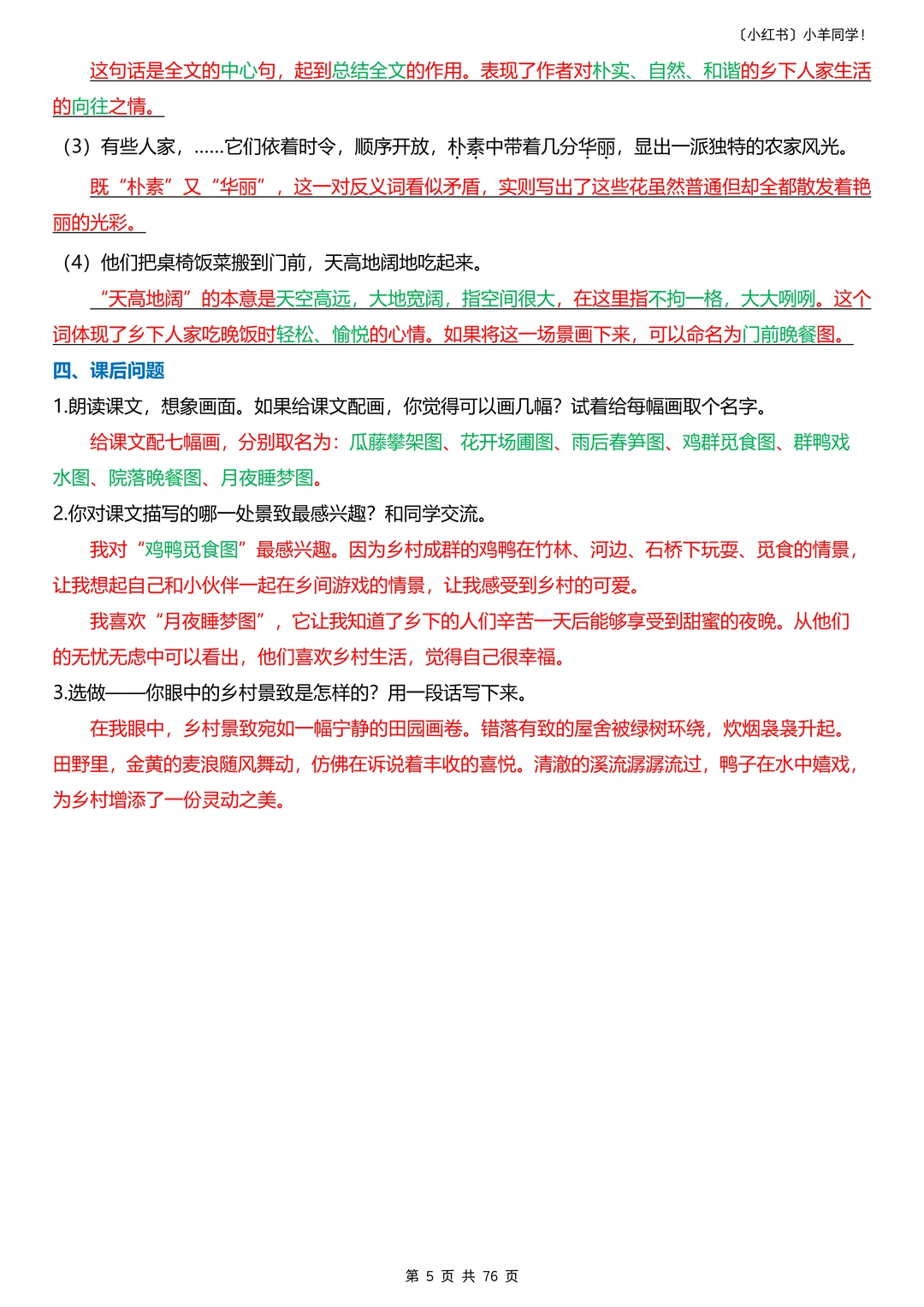 📣声明:原创整理,禁止转载发布网络平台或商用,侵权必究。 真的整理到想哭(҂ ꒦ິヮ꒦ິ),把四下的知识点都扒了个遍,单参考教辅就用了10多本!家有四年级娃的宝妈!一定要安排这份每课重点+语文园地归纳,让娃每天读 10分钟,轻松抓分!​ 一共76页。 ----- 🔍 4 大模块,每天读一点​ 1️⃣重点字词语 2️⃣根据课文内容填空 3️⃣课文重点知识点 4️⃣课后题​ 语文园地的板块都包含(不含作文)。 ----- ✨ 为什么适合每天读?​ ✅内容精简:每课重点浓缩,10 分钟就能读完。 ✅考点明确:只留要考的,不浪费时间在无关内容上​。 ✅持续提分:每天积累一点,期末语文稳提升​。 ----- 🎁 领取方式​ 完整电子版,直接点左下角店铺获取!​ 五年级语文打基础关键期,让娃每天读 10 分钟,比盲目刷题更有效~💪 收藏起来,陪娃坚持!