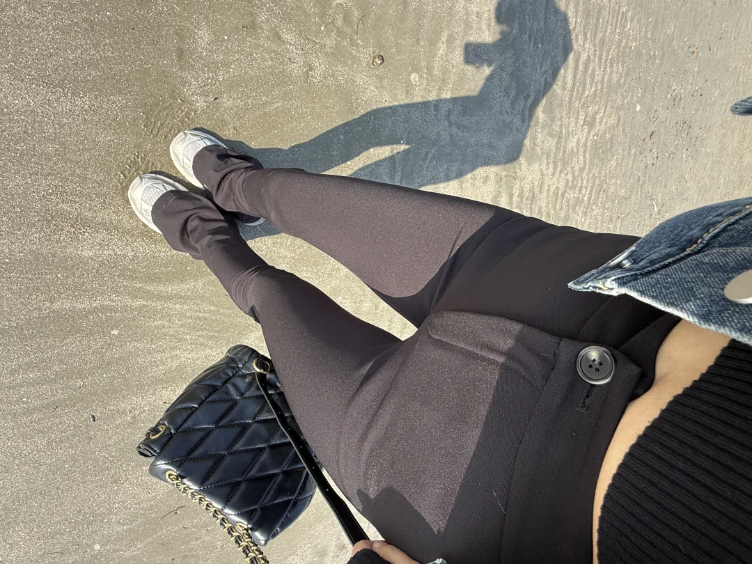 前我发现去海边 马蹄裤特别好穿 因为可以把裤子卡在膝盖处 它也不往下掉 就不会把裤脚踩脏 同理!上厕所也很方便! 裤子牢牢卡住 它不往下掉 另外真的很显瘦啦!!