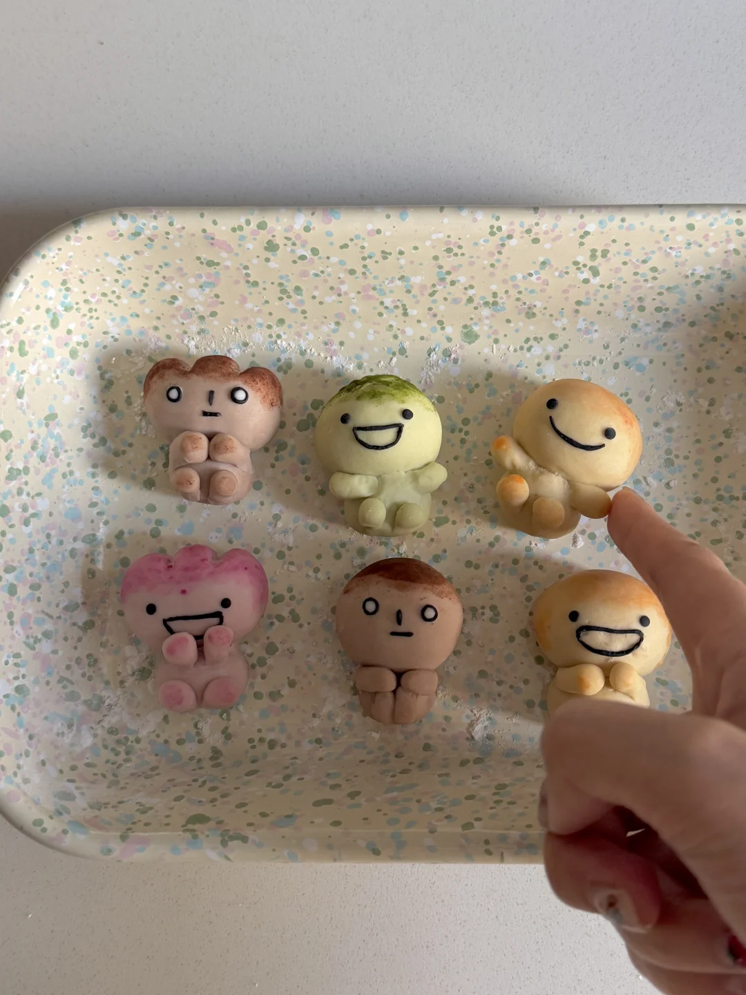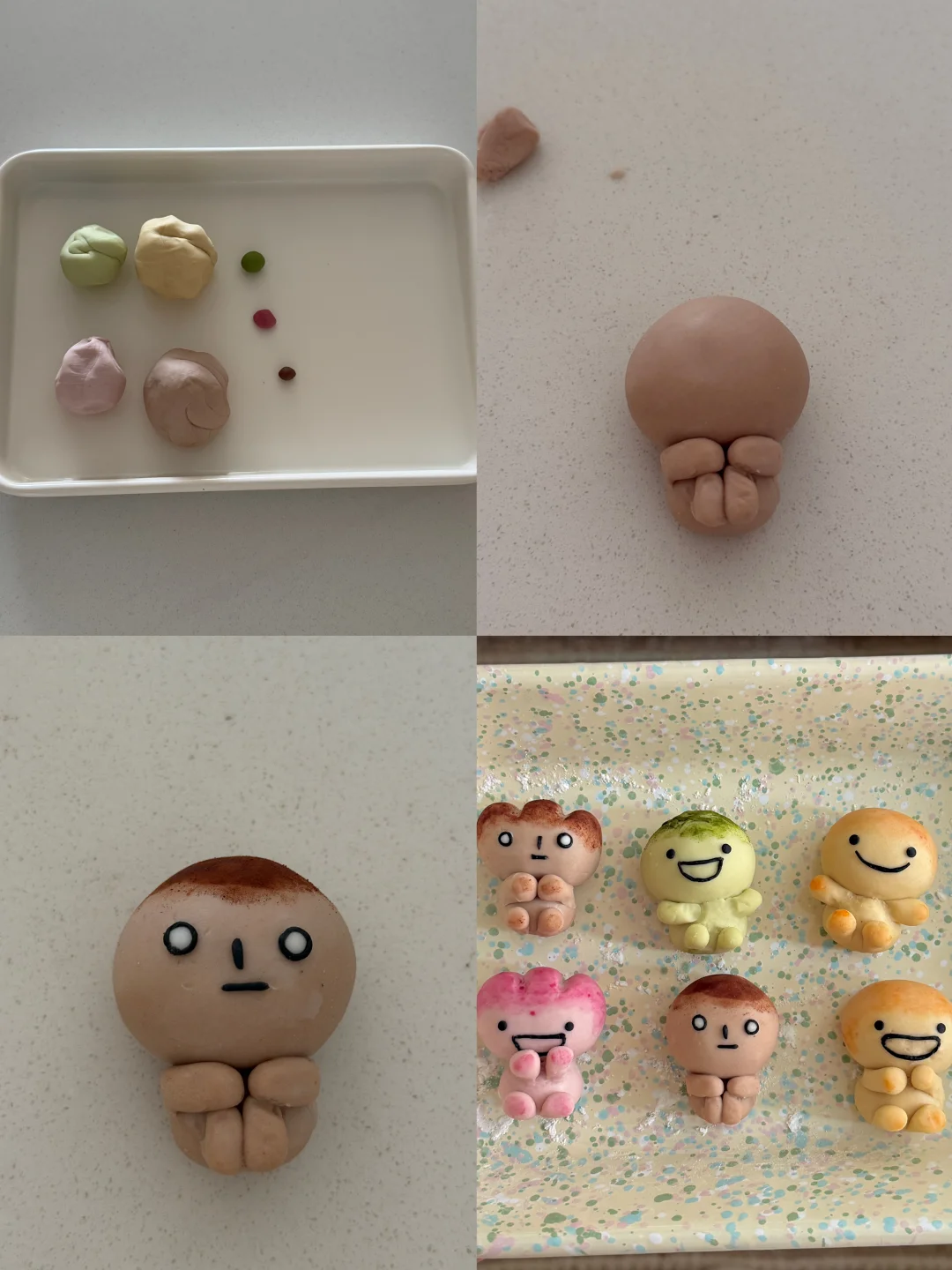 2️⃣面团调色:棕色:可可粉 黄色:南瓜粉 粉色:仙人掌果粉 绿色:抹茶粉 黑色:竹炭粉