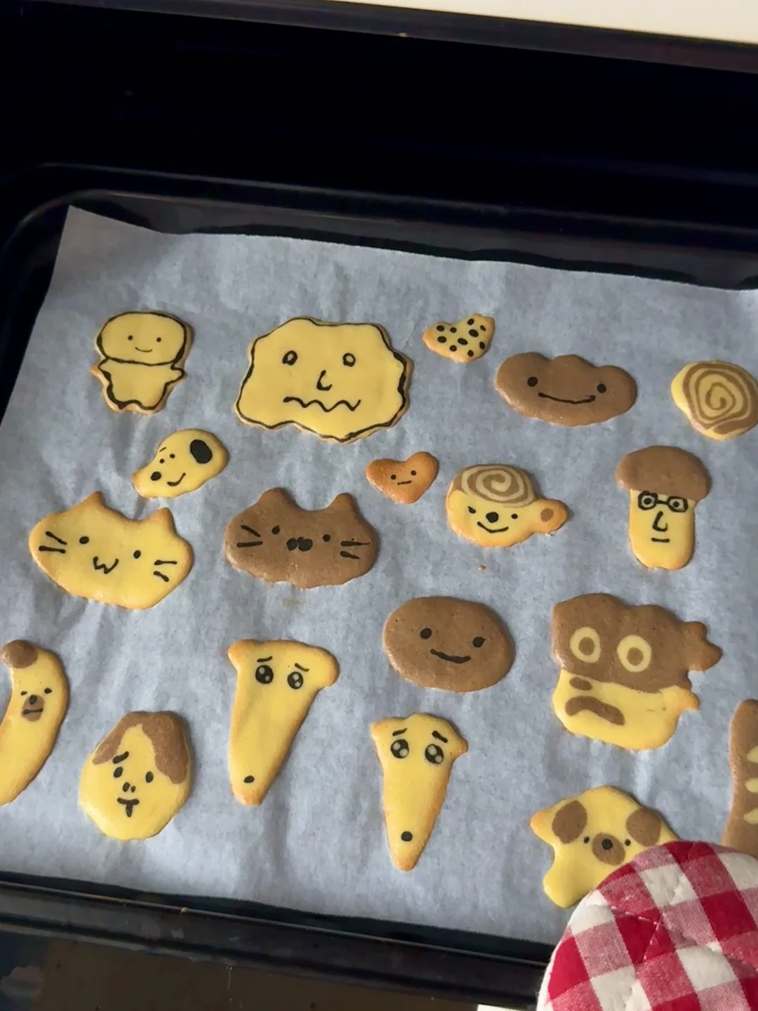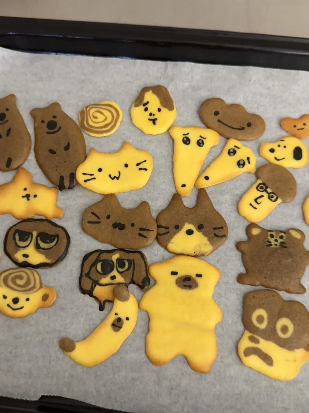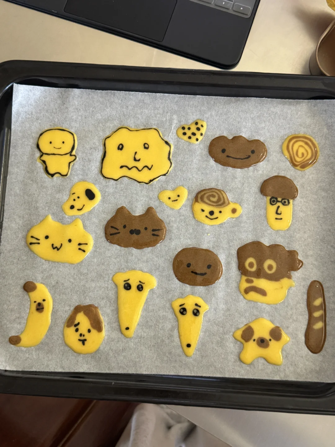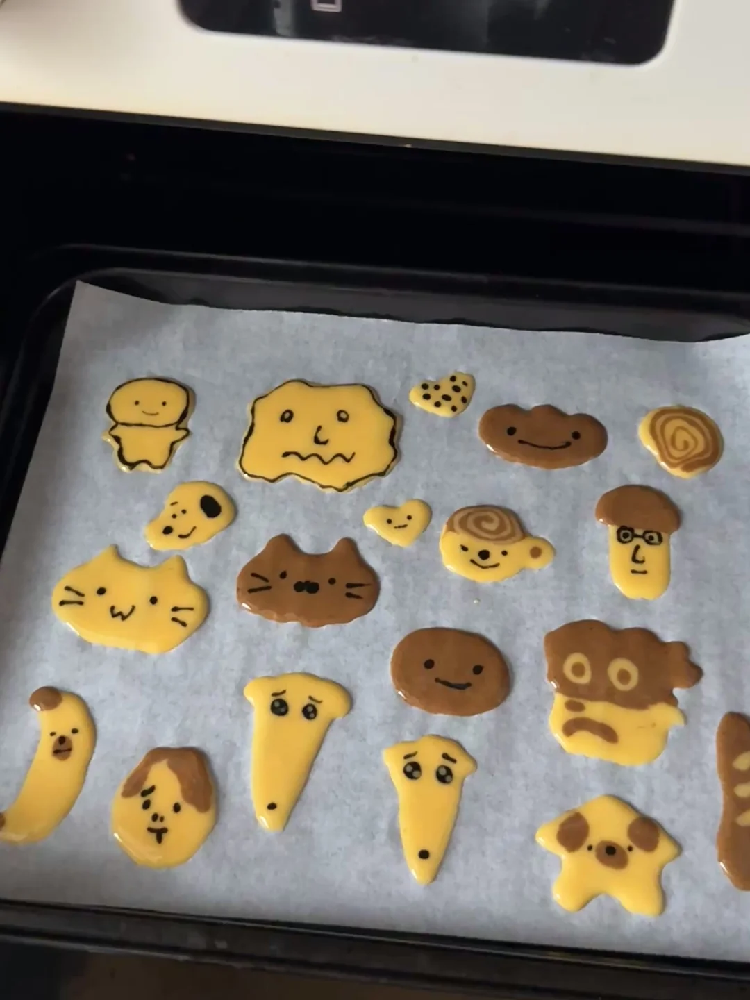 4️⃣烤箱铺上油纸,在上面画出自己喜欢的图案