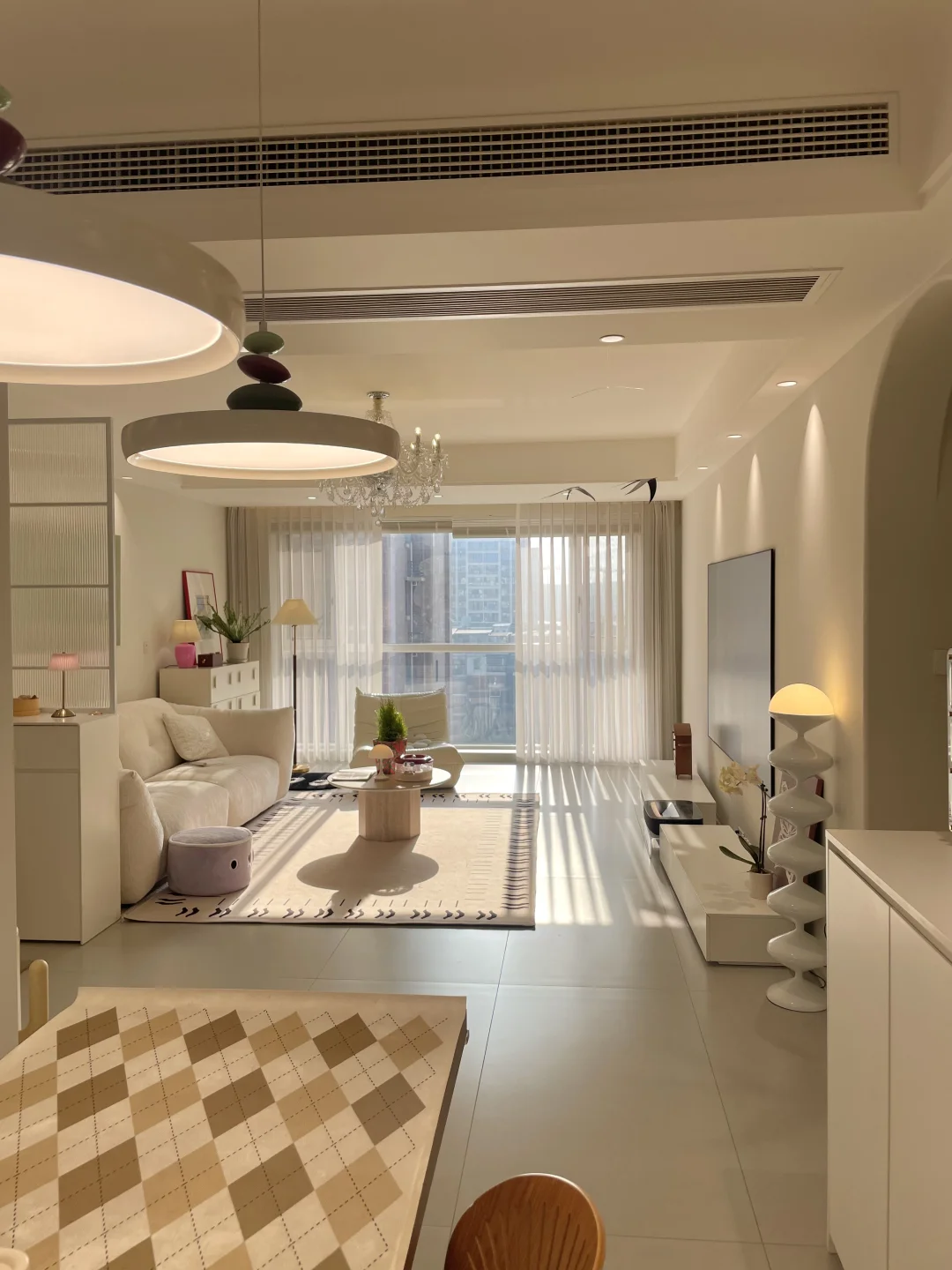 当初坚持不做复杂的硬装设计 住了3年多,依旧觉得很不错 简简单单的风格 暖暖的阳光,照进整个客厅 家真的是最温馨的港湾~