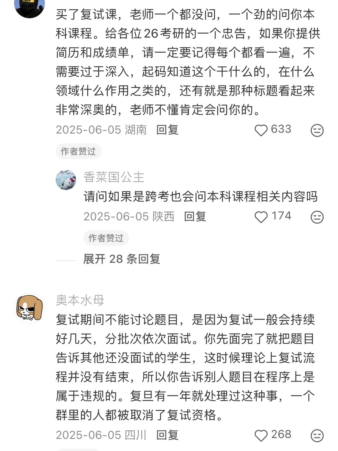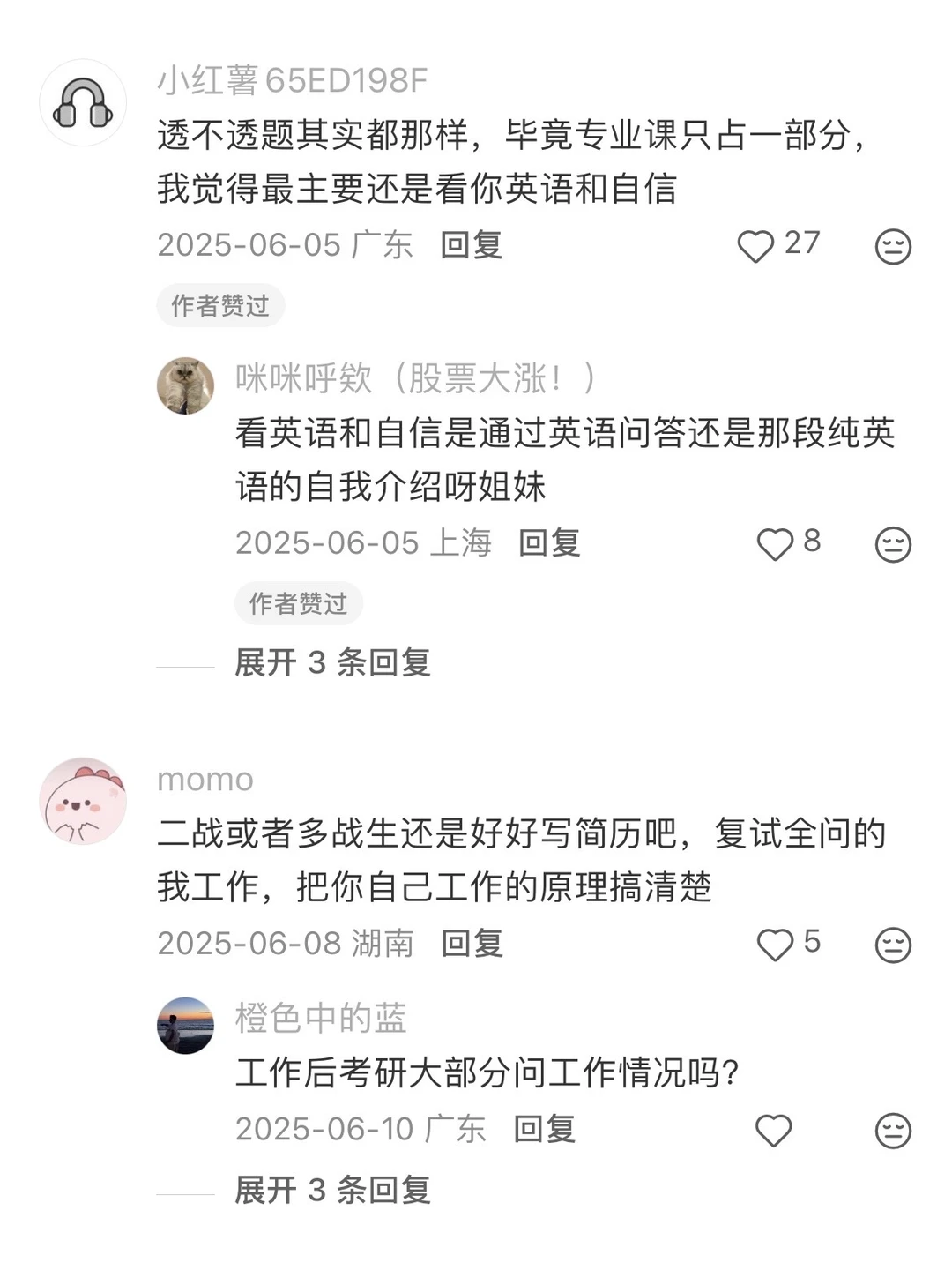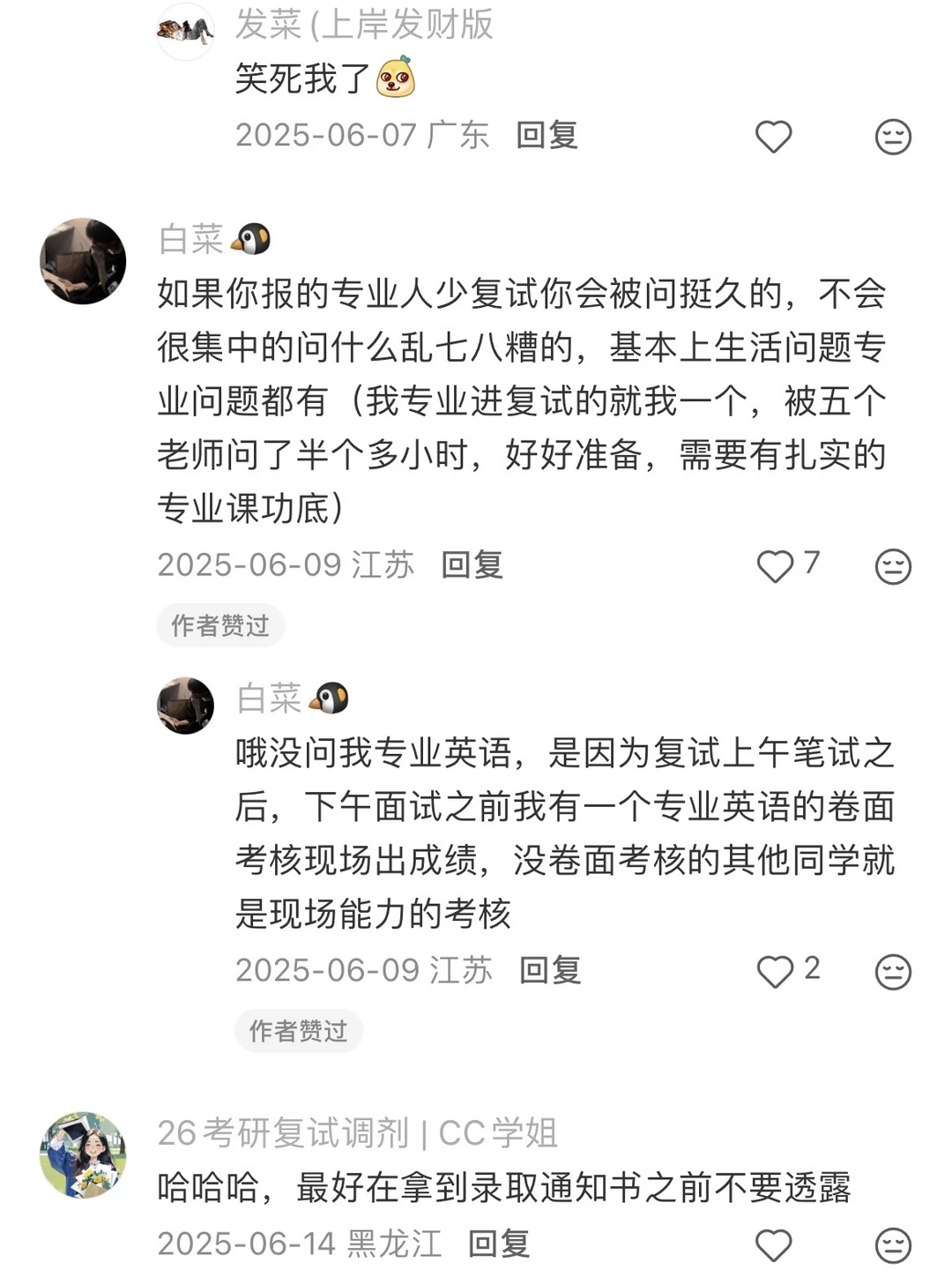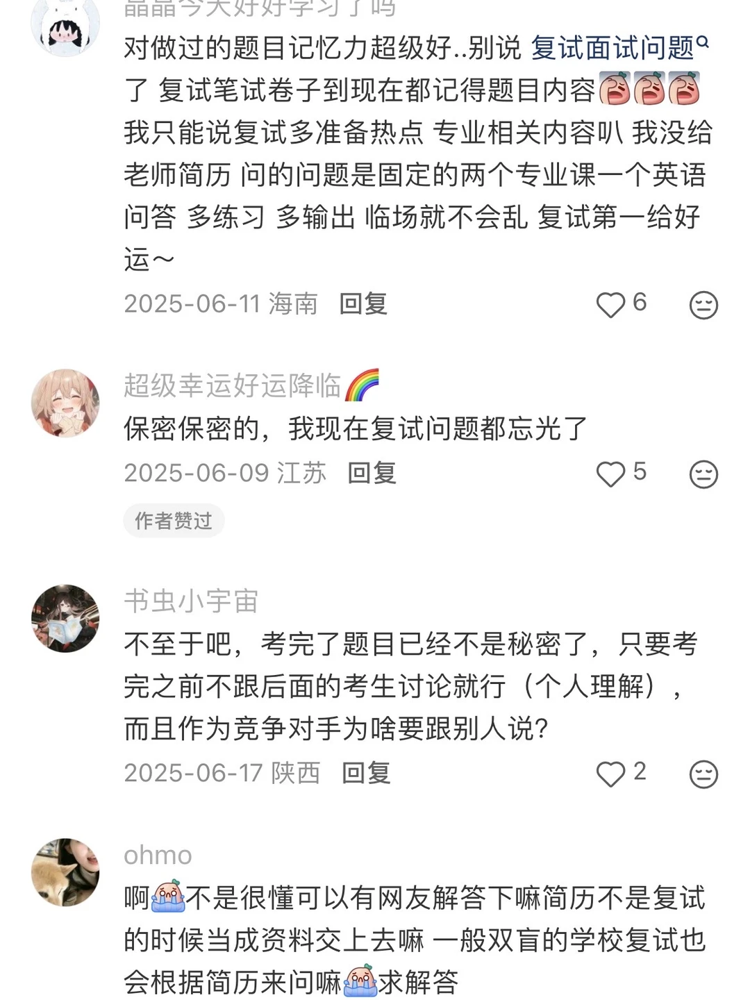 要准备复试的小伙伴看过来!! 可以多听听过来人的经验! 兑兑祝大家马年马到成功,一站成硕[合十R] 联系导师【邮件模板】和复试练习【准备经验】贴已置顶,欢迎大家取用!关于复试有什么问题可以提问,也欢迎⬇️蹲蹲复试搭子呦[派对R]