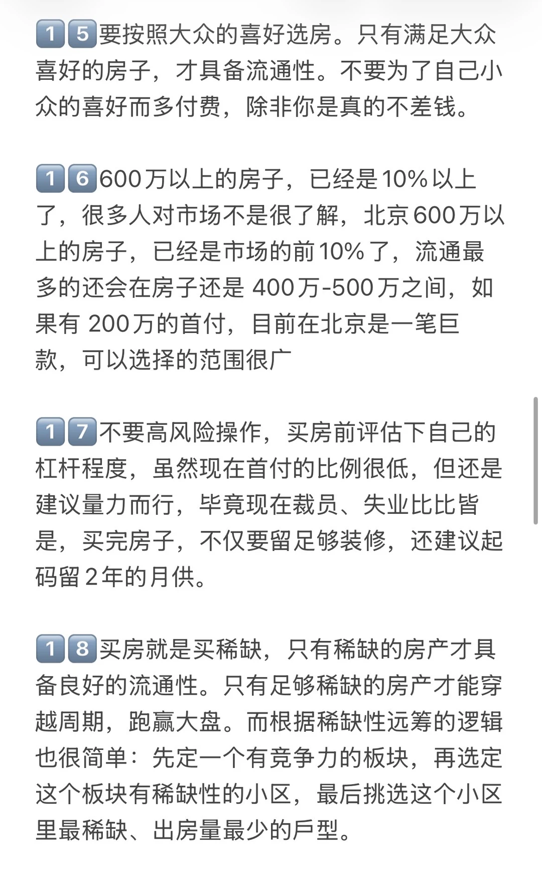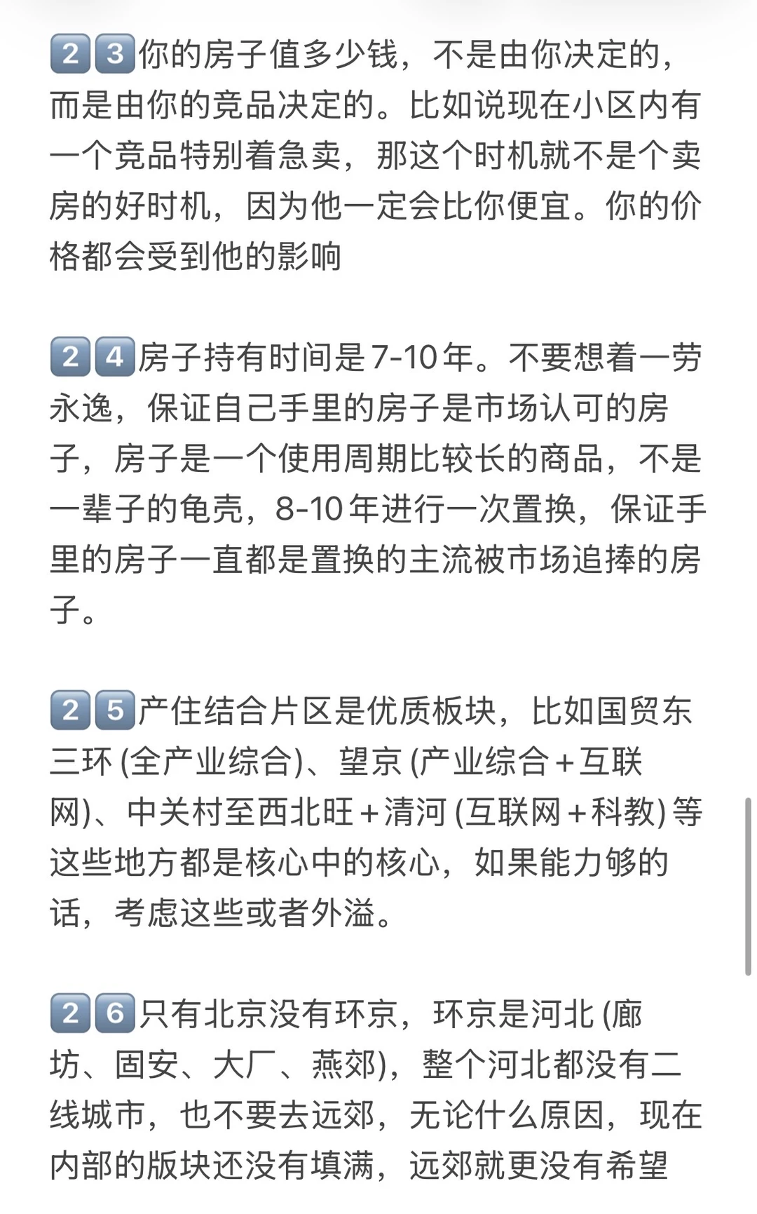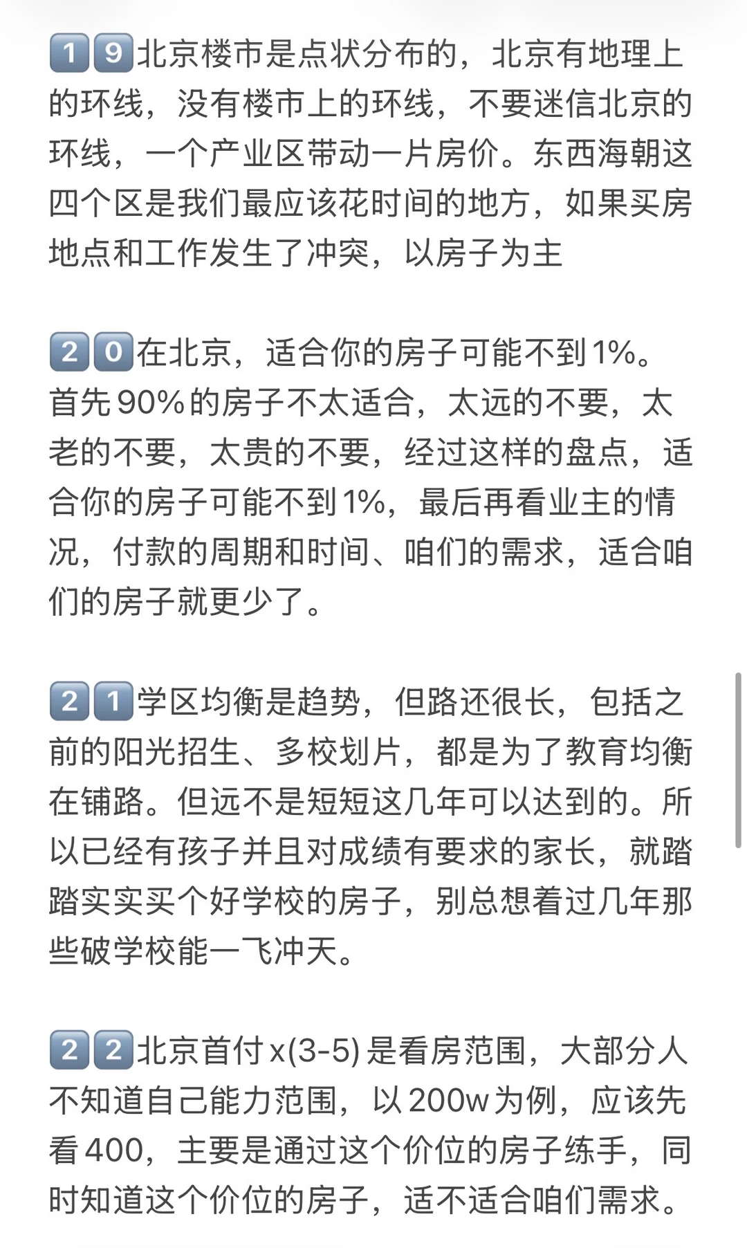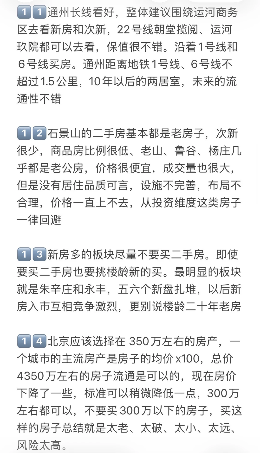 1️⃣未来北京不会有大涨跌的时候了,你的房子如果是老破小,现在会跌,未来还会跌,要认清这个现实。只有20%好地段好位置好板块才有空间,要么是带有产业的品质次新商品房,要么是学区价值高品质不错的书包房。
