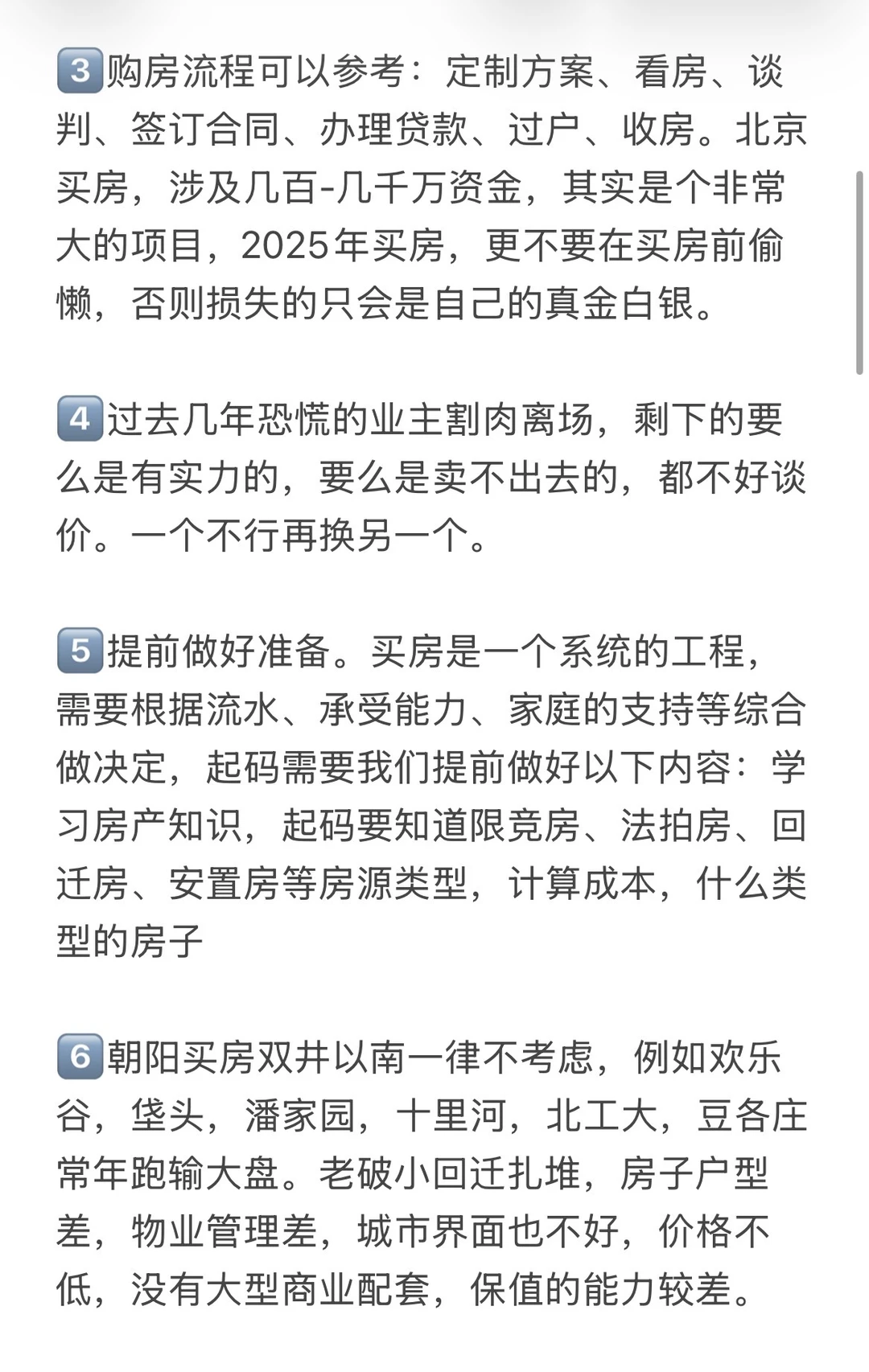 3️⃣购房流程可以参考:定制方案、看房、谈判、签订合同、办理贷款、过户、收房。北京买房,涉及几百-几千万资金,其实是个非常大的项目,2025年买房,更不要在买房前偷懒,否则损失的只会是自己的真金白银。