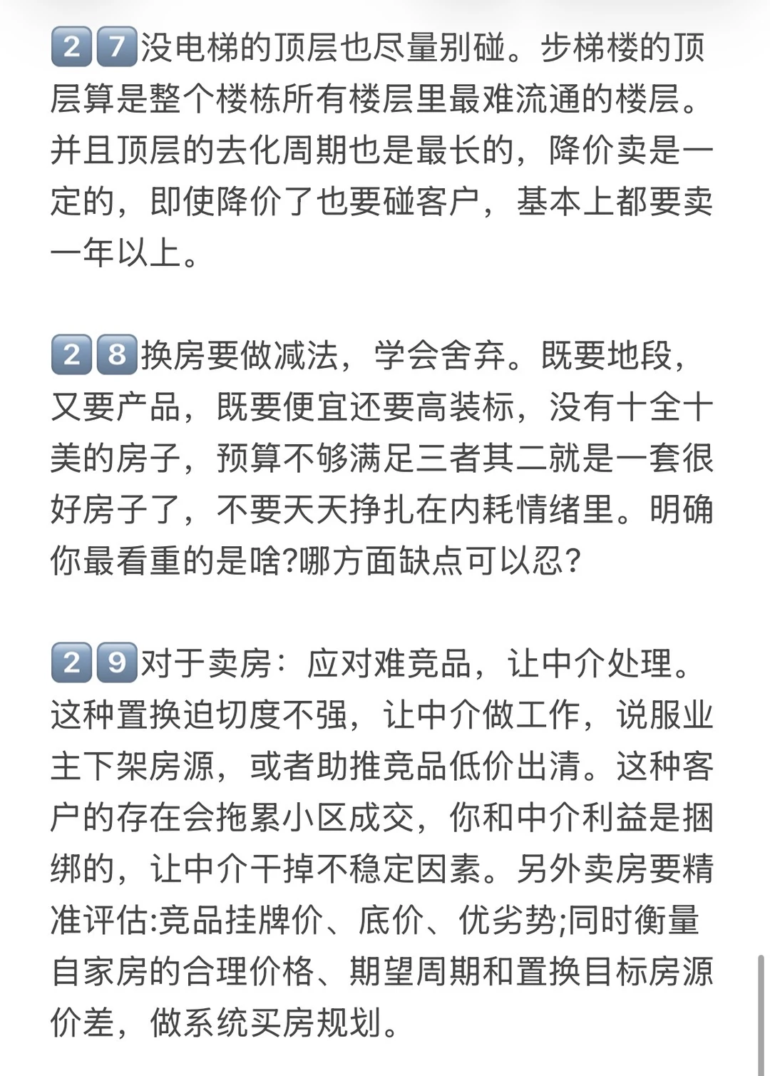 2️⃣不要买有两个缺点的房子。很多人不得不为房子进行妥协,但是房子最多有一个缺点,两个缺点极难卖出比如远郊老破小就不推荐,没有地铁的远郊新房也不推荐。