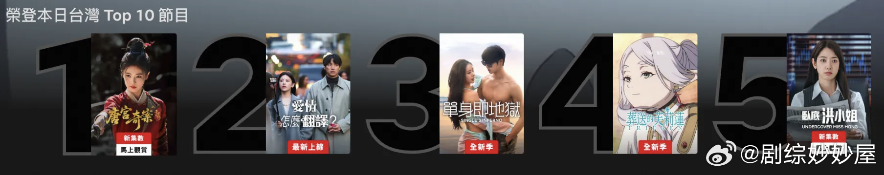 优酷《唐宫奇案之青雾风鸣》开播三天站内热度破万,成2026年首部破万剧,并登顶灯塔全网正片播放量榜,猫眼全网热度榜、全网有效播放量榜位居前三。于Netflix全球同步播出后,最高登顶台湾地区日榜,并位列新加坡、香港地区日榜第三🐮白鹿太抗剧了吧