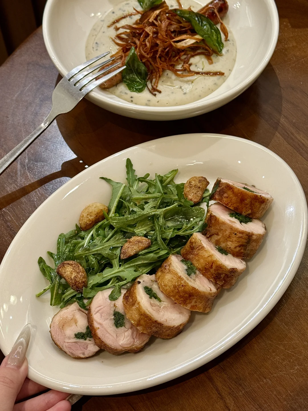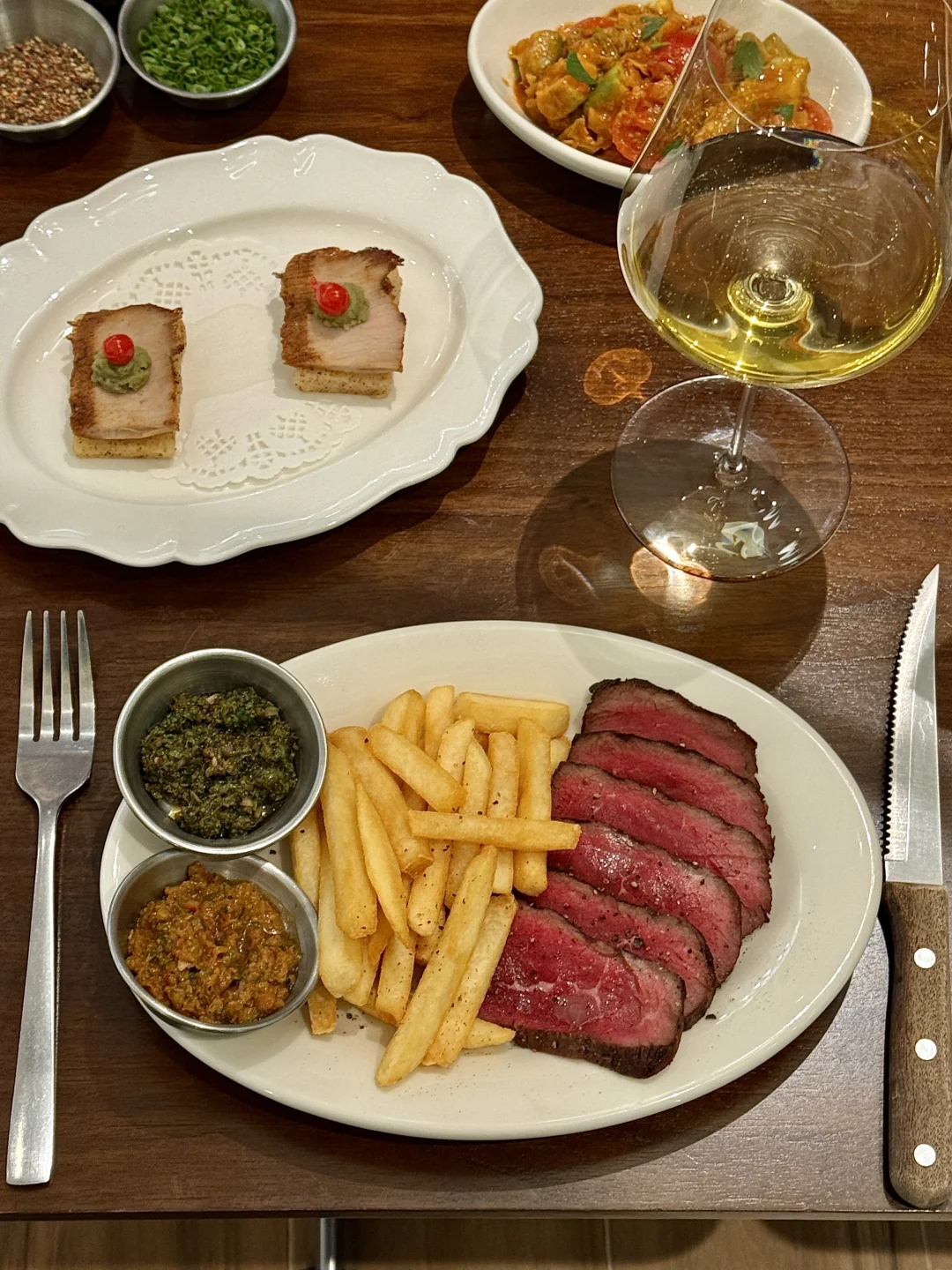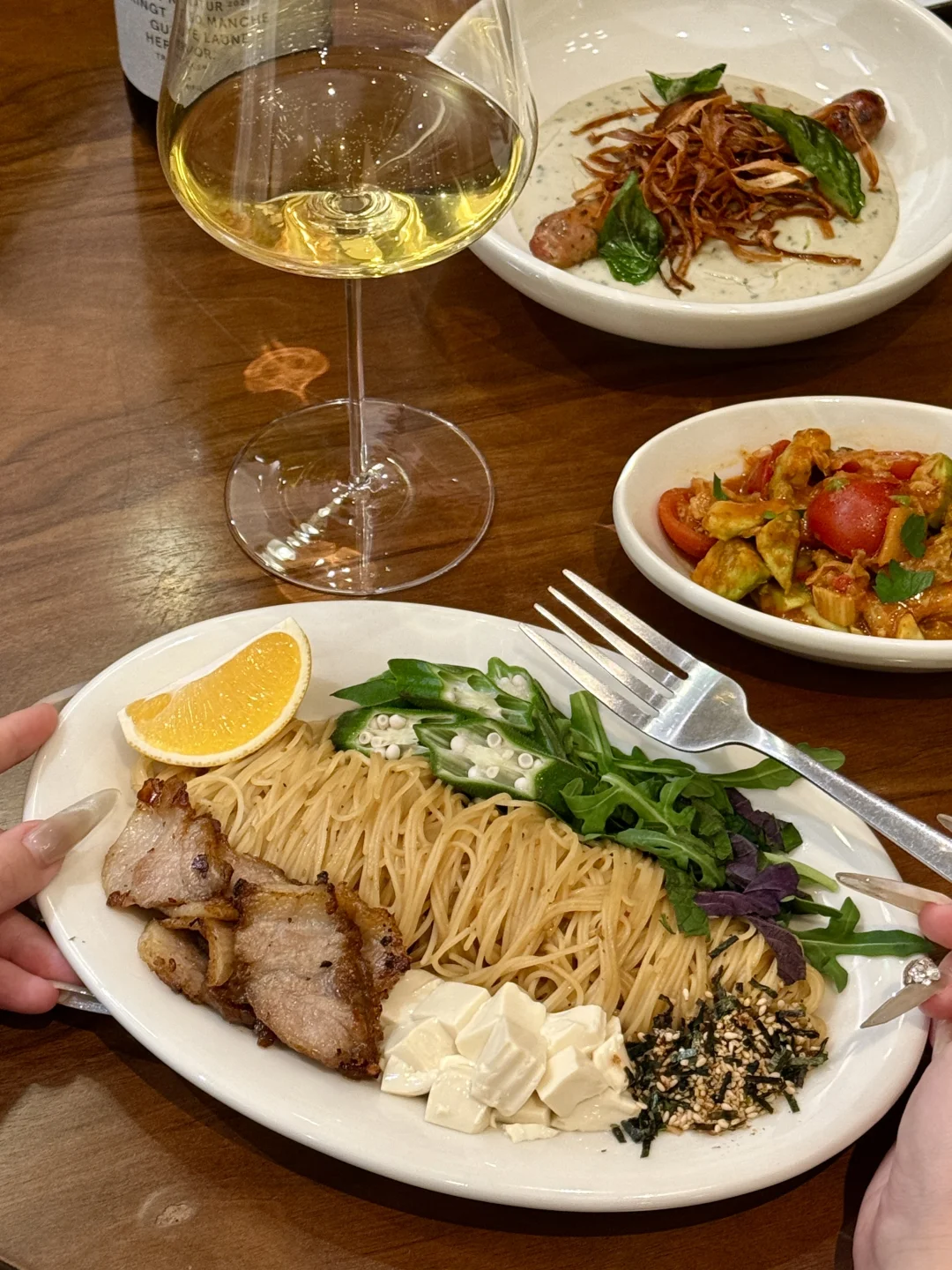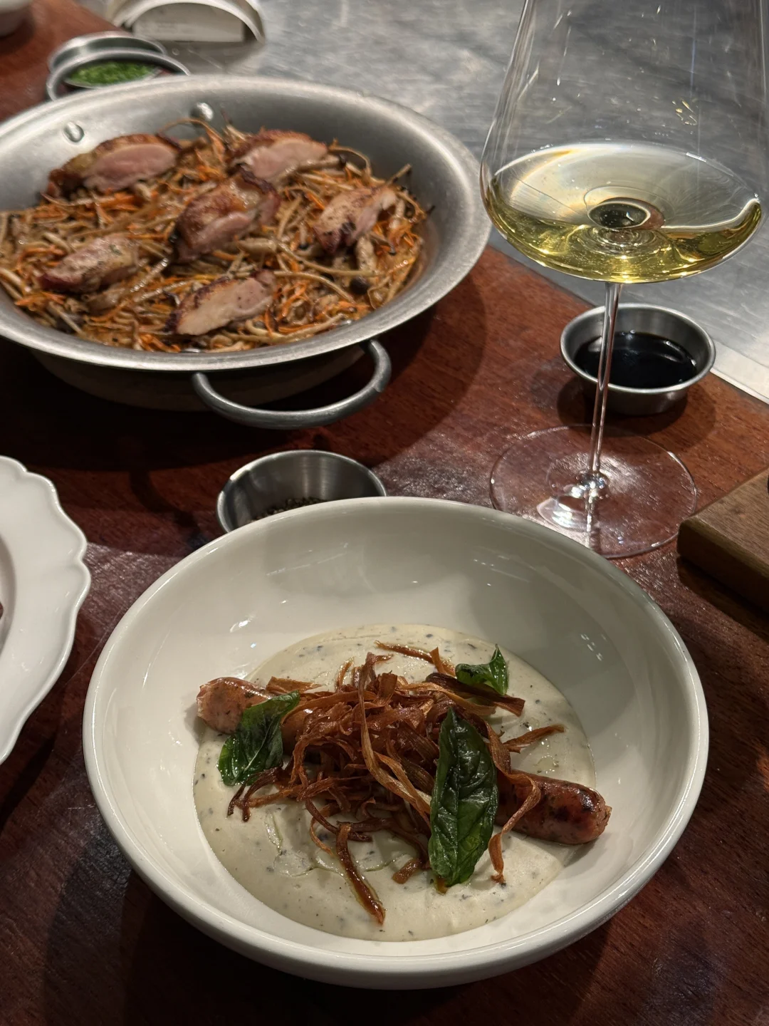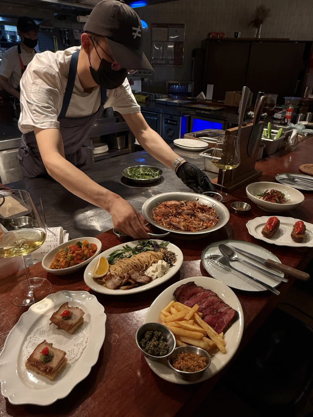 杭州约会top前三的餐厅🍴出乎意料的好看又好吃!!! 高级氛围感+亚洲融合菜的创意风味,很不得了的味道 我个人比较喜欢五目炊饭和炭烤牛排薯条🥩 蒜香番茄烤馒头也给我很大的惊喜!!还有鸡肉香菜八幡卷我也强推! 会想带朋友一起去吃的宝藏餐厅,明档好chill!