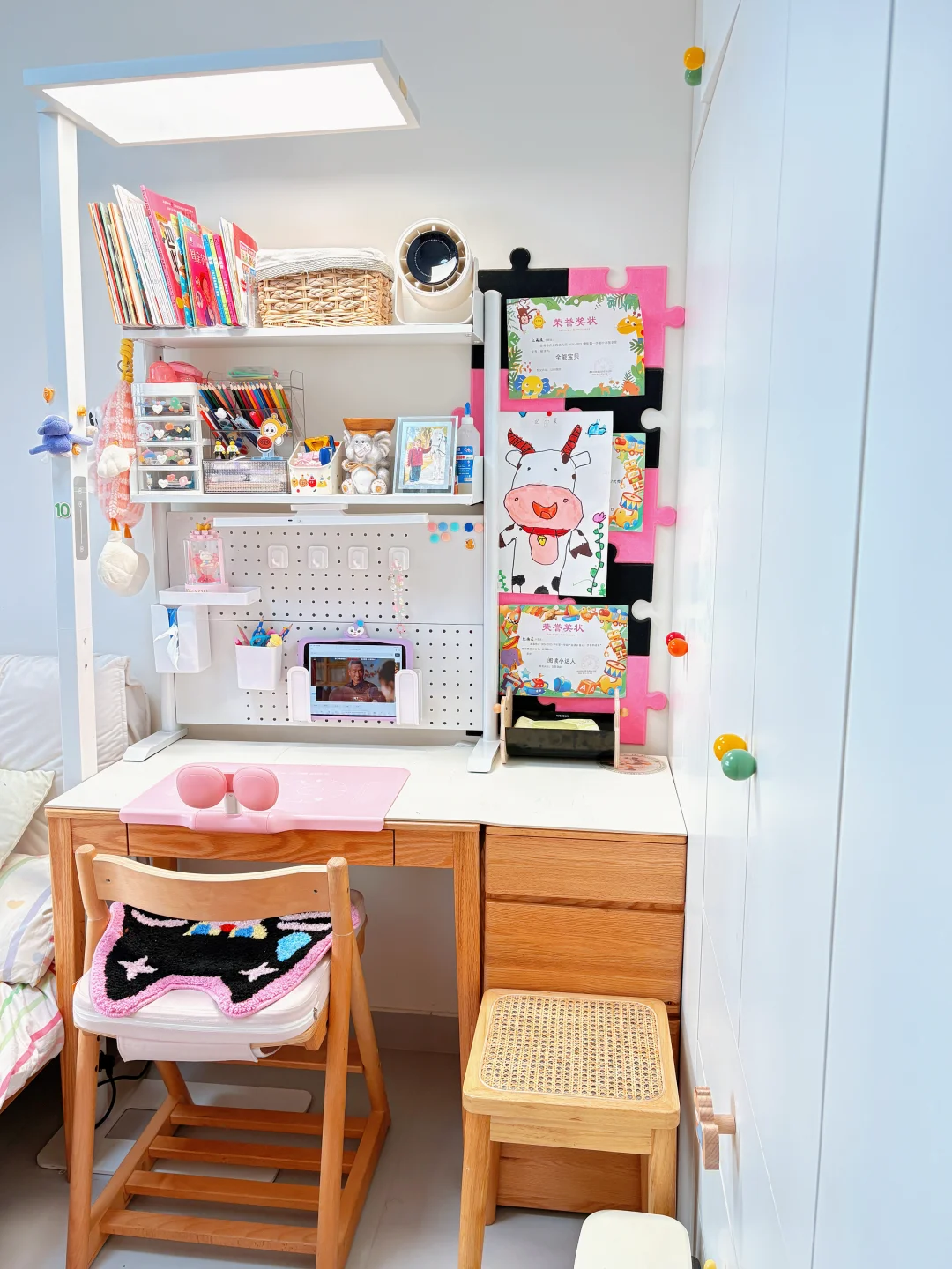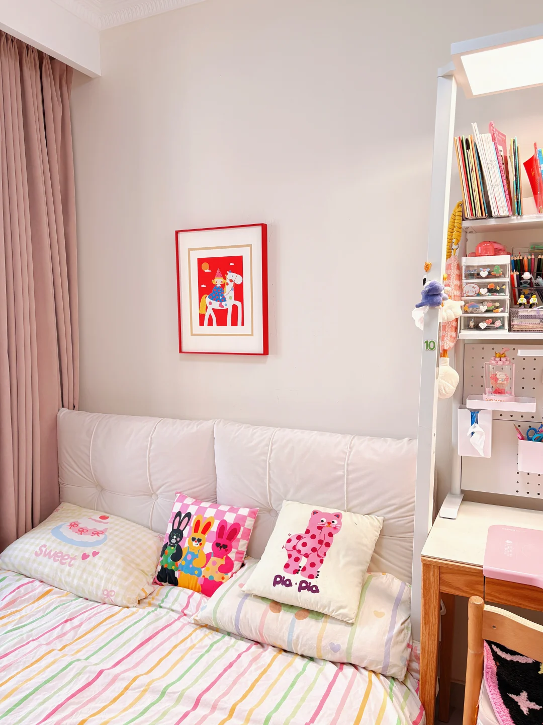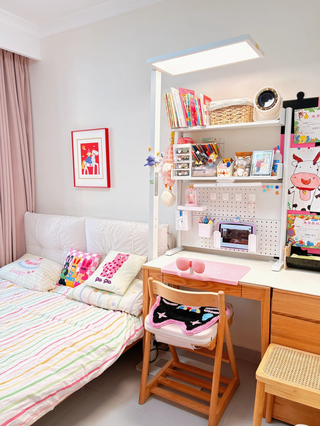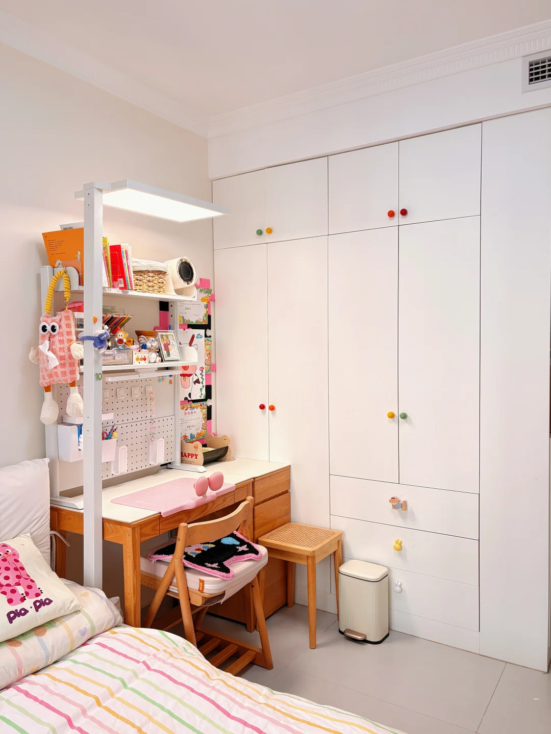 要问为啥那么多东西?主要是她从小到大的东西哪个都不舍得扔,并且娃现在大班了,正准备幼小衔接,所以这个房间主打实用,而不是摆拍,欢迎👏大家一起交流如何幼小衔家啊,有点迷茫😕