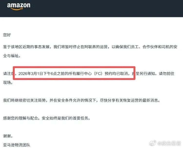 三、阿联酋境内FBA仓库安保级别提升至最高。这是一次相对及时的“兜底”,但兜底不等于消失的损失就能回来。有卖家反馈,阿联酋仓库在2月底已连续拒收货物。系统要求暂停,新货进不去。也就是说,就算你有库存准备,也无法补仓。
