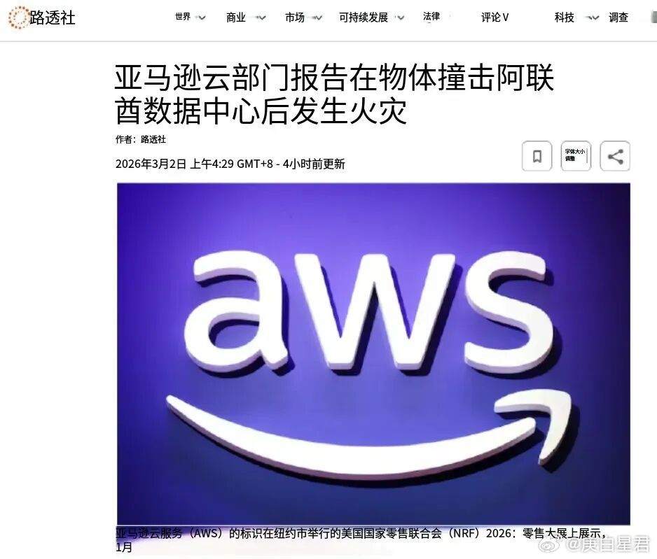 而根据路透社报道,亚马逊随后证实:是无人机“直接击中”其在阿联酋的两处设施,巴林也有一处设施因附近的无人机爆炸受损。事故发生后,为了保障安全,消防部门切断了该数据中心供电。你可能以为,战争离卖家很远,但其实只隔着一根网线。更现实的是,这场“火”烧到的,不只是机房。