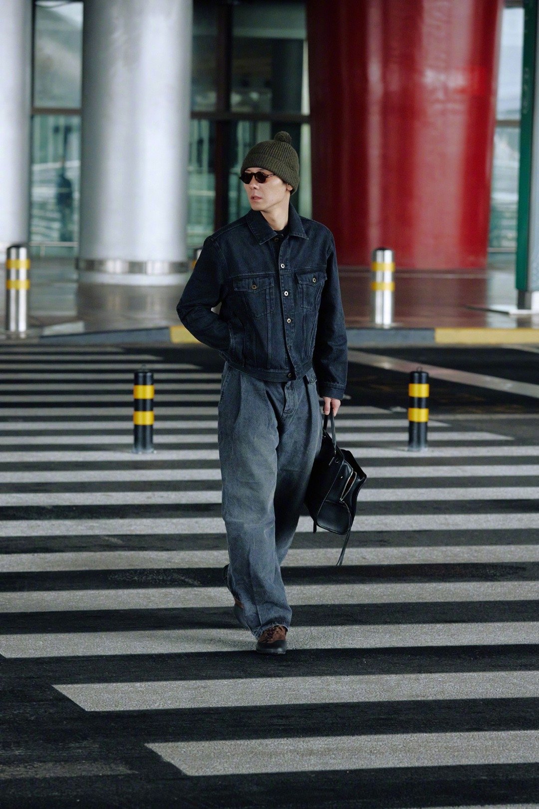 蒋奇明live没有一帧废镜头 深灰牛仔套装干净利落,橄榄绿冷帽随意扣在头上,复古
