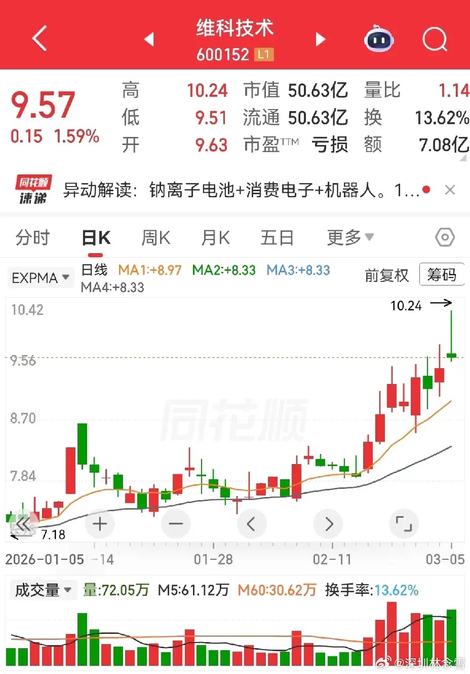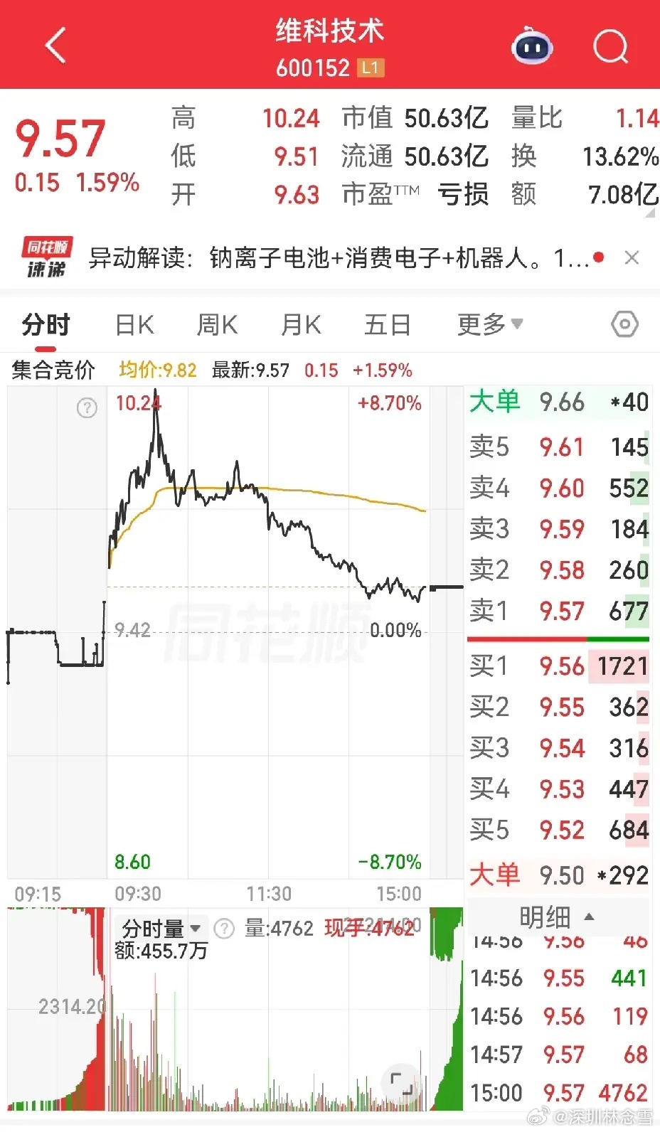 维科技术今天也是冲高诱多、逐波回落,收盘+1.59%。