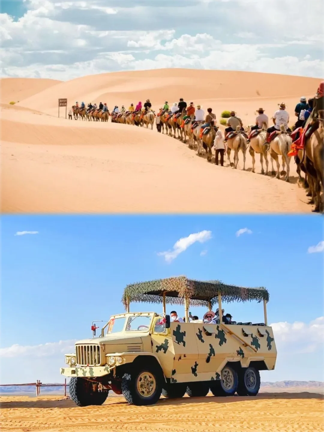 下午进入【腾格里沙漠】沙坡堆筑赛 + VIP免排队长线骆驼骑行(40分钟超值!)