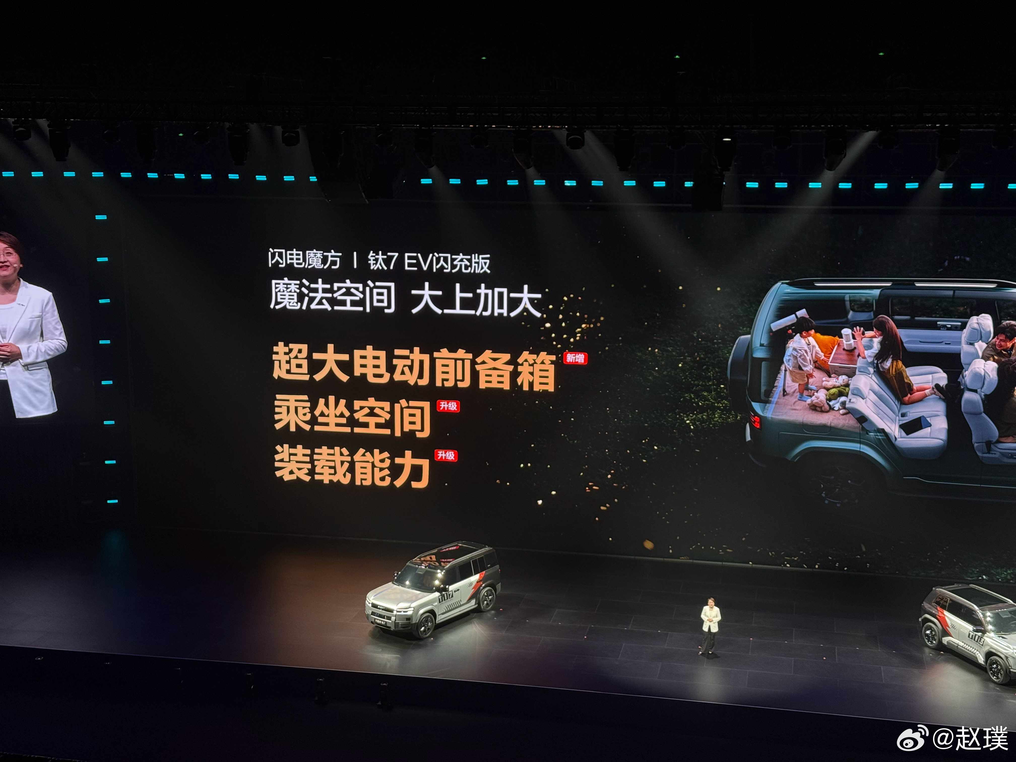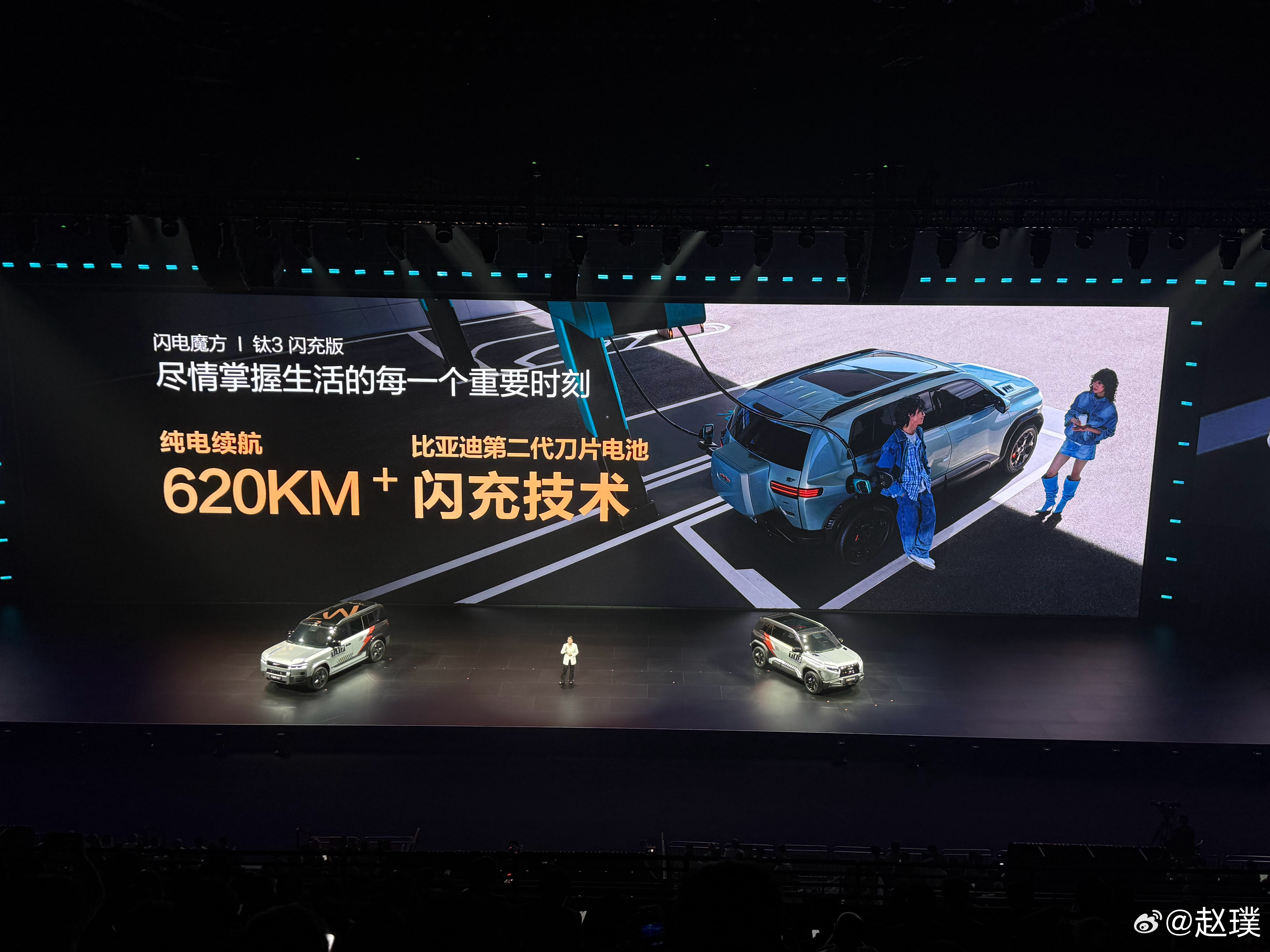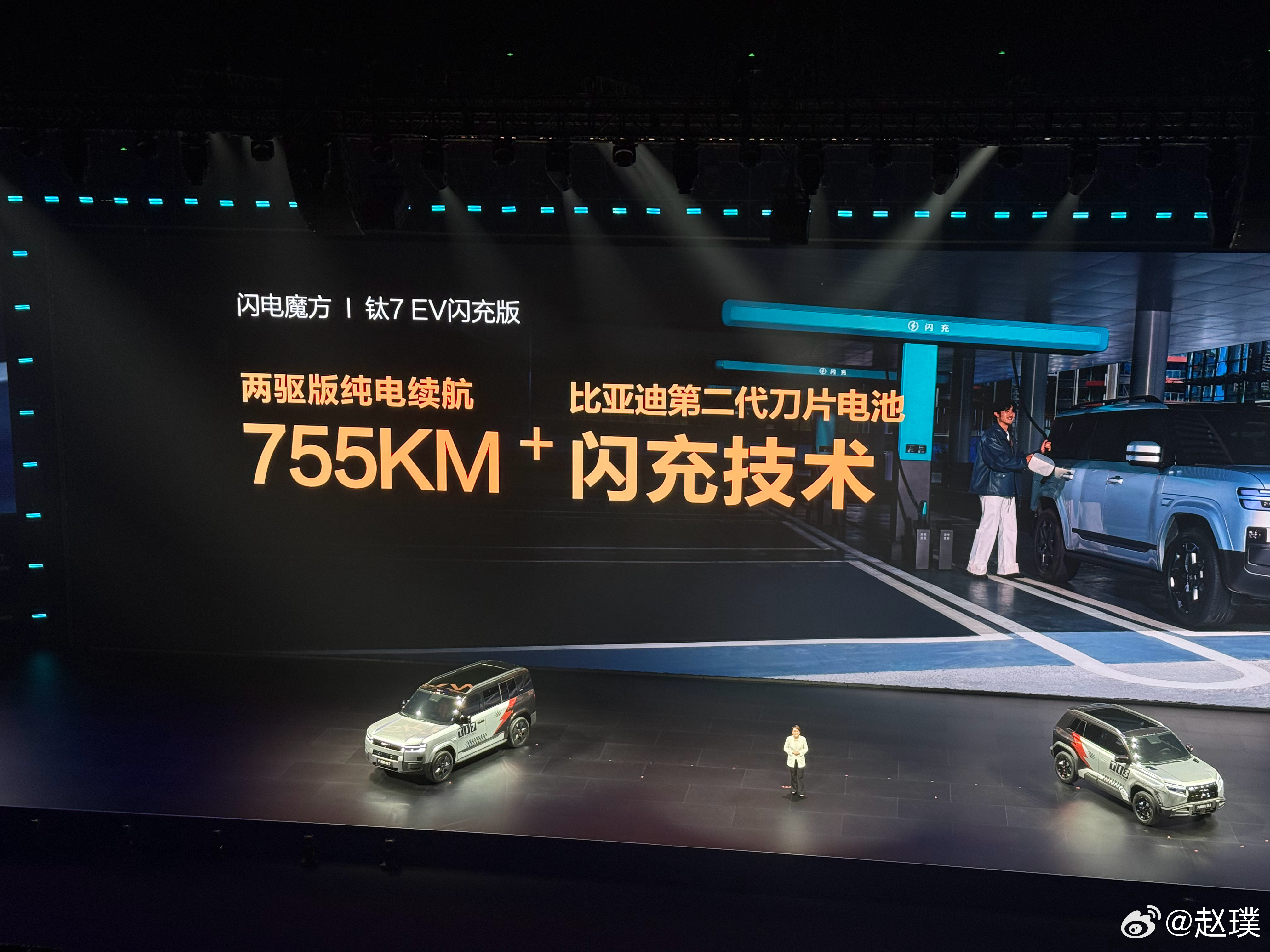 方程豹在比亚迪今晚发布会上带来了全新的钛3 闪充版和钛7 EV闪充版,均搭载二代刀片电池和闪充技术,同时还上线了限量版「皮肤」车衣。钛3闪充版CLTC最大纯电续航里程达到620公里。钛7 EV闪充版CLTC最大纯电续航里程达到755公里。更多信息会在3月13号公布,大家猜猜这两款车的价格会是多少?比亚迪今晚发布二代刀片及闪充方程豹钛3方程豹钛7