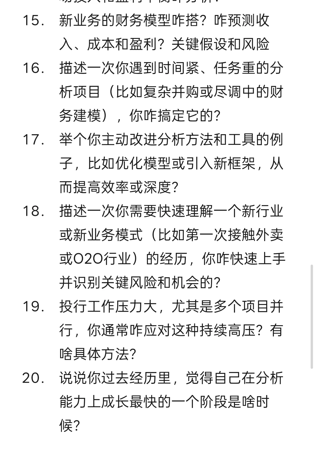9. 从投行转到企业财务BP,你觉得投行经验在财务分析和建模方面有啥帮助?最大挑战是啥?