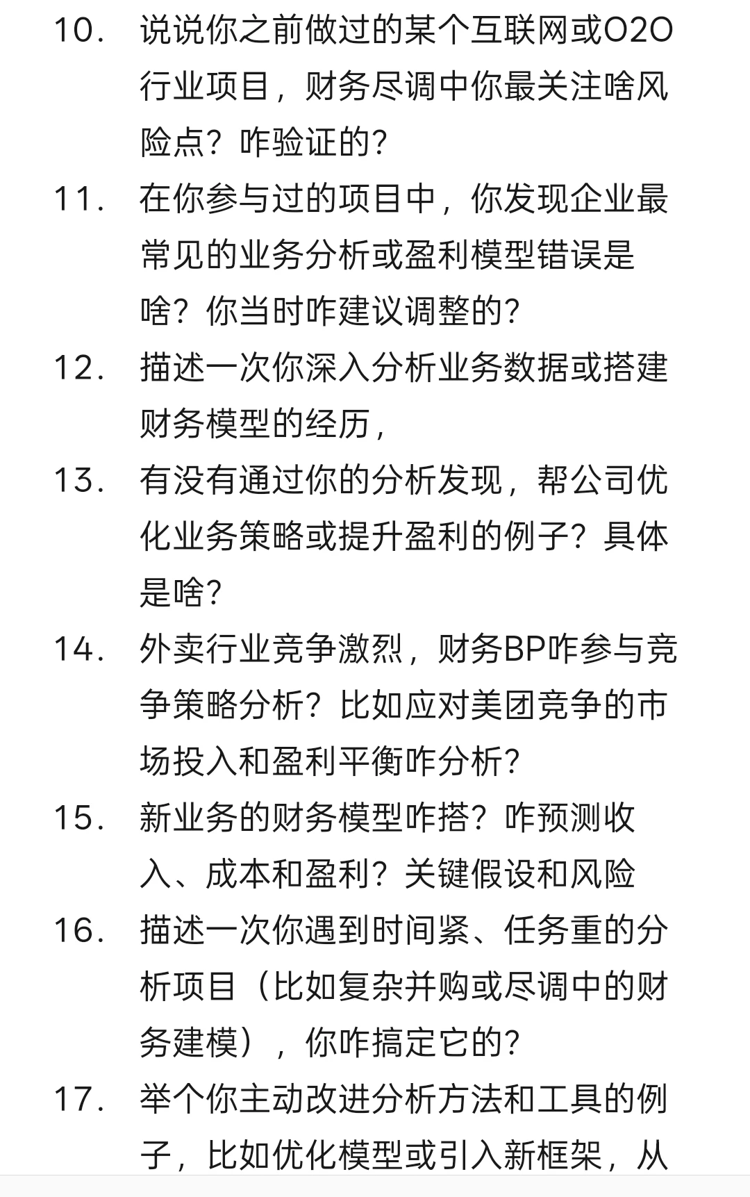 10. 说说你之前做过的某个互联网或O2O行业项目,财务尽调中你最关注啥风险点?咋验证的?