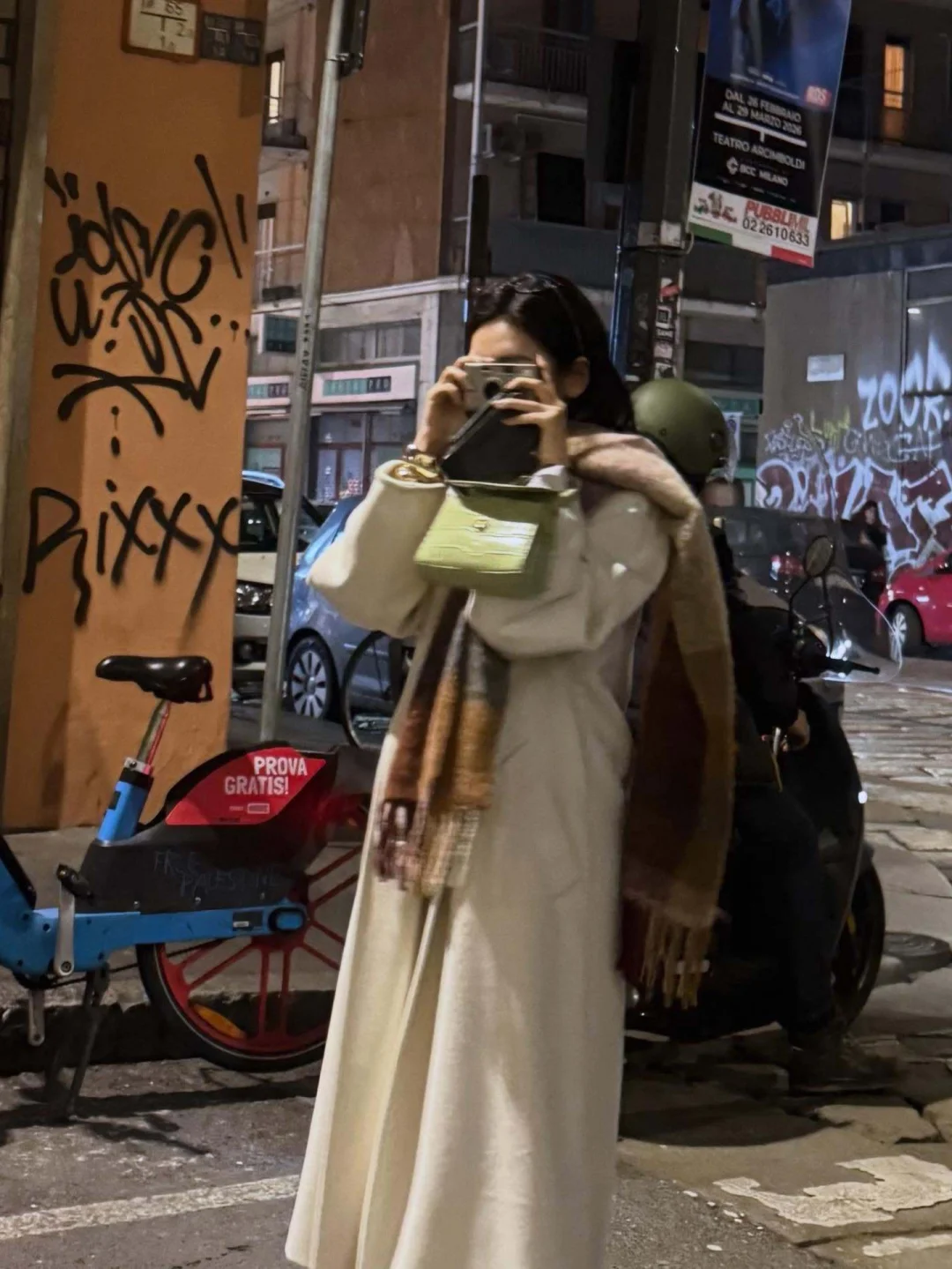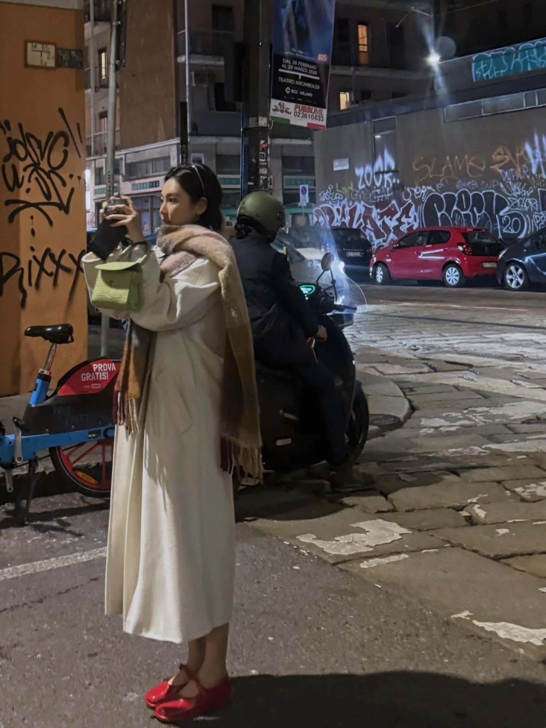 宁宁暴风更新,白色大衣搭配小红鞋,温柔又美丽,在米兰留下美好回忆! 女明星私服 女明星穿搭 女明星同款 宁艺卓 拿捏氛围感 拍出氛圉感 图片来源于