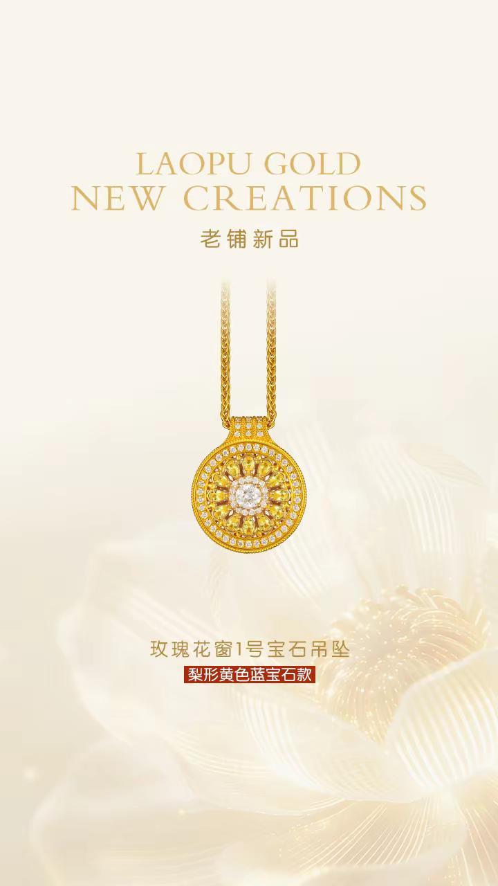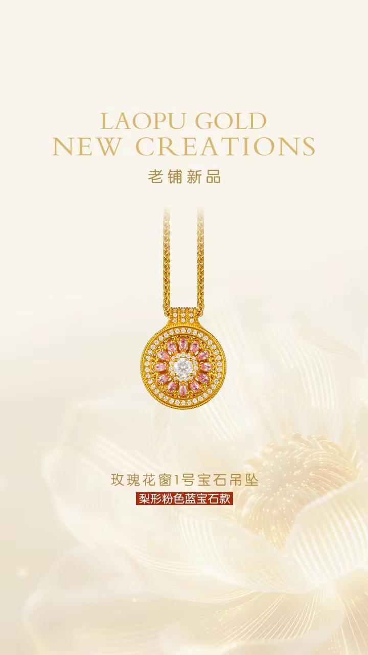 老铺新品发布丨玫瑰花窗1号宝石吊坠。簇镶梨形粉色蓝宝石与圆形主钻令经典玫瑰花窗折射出温柔而笃定的光芒优雅,是光选择停留的姿态 老铺黄金 老铺点钻 老铺新品