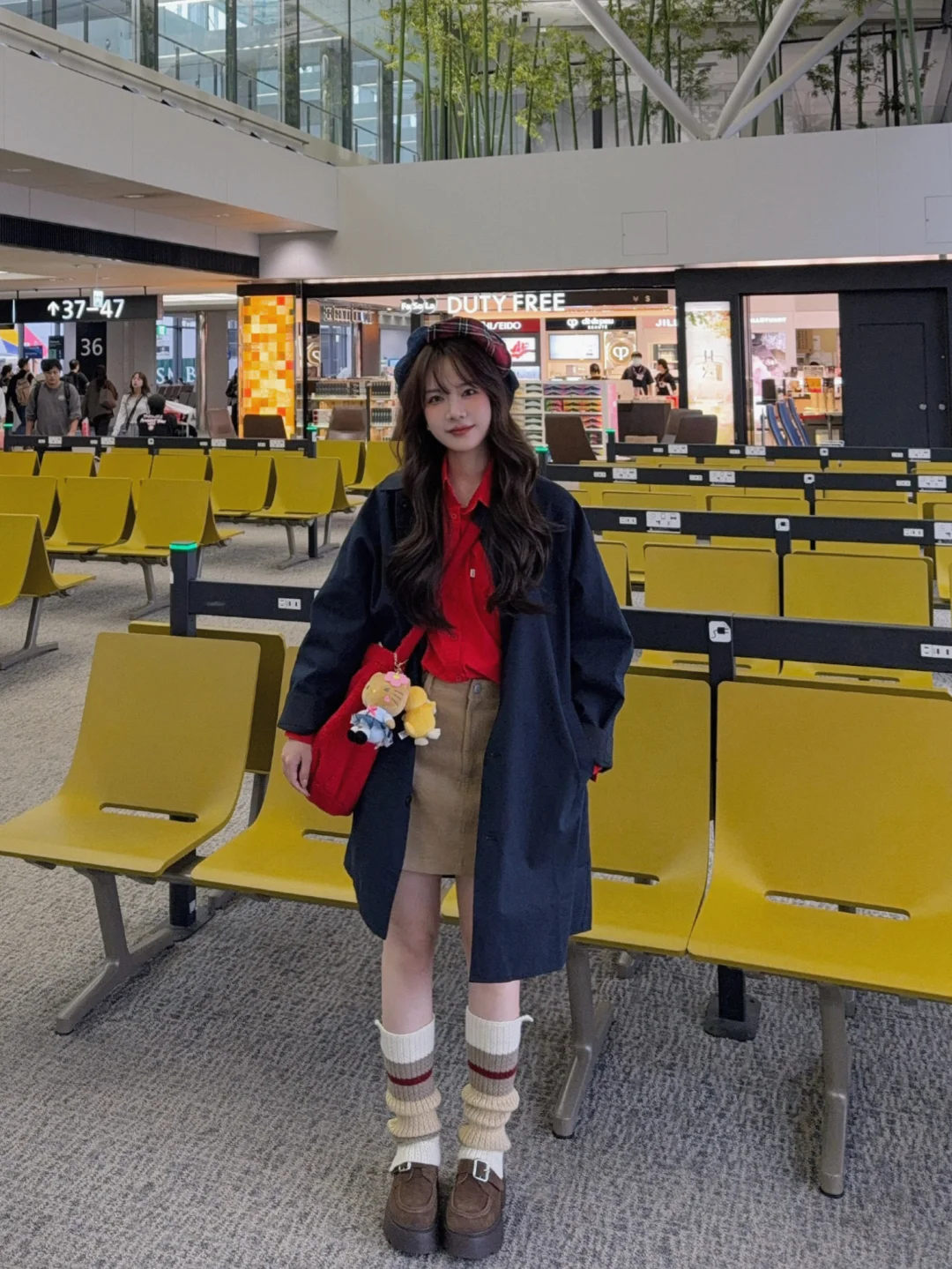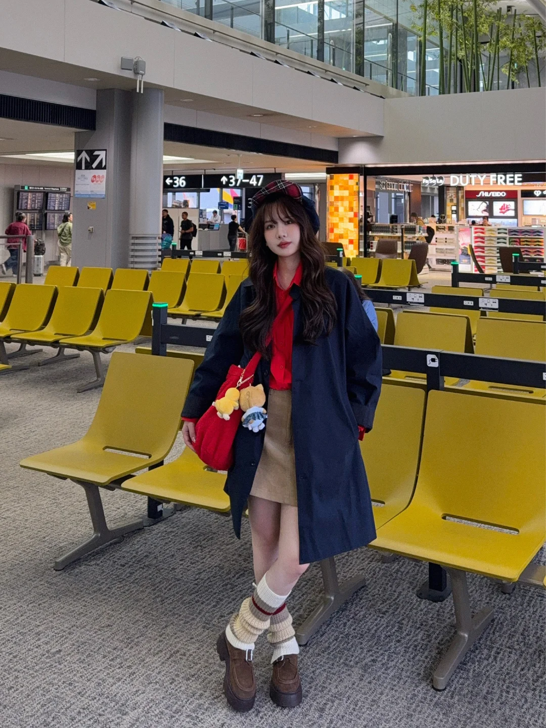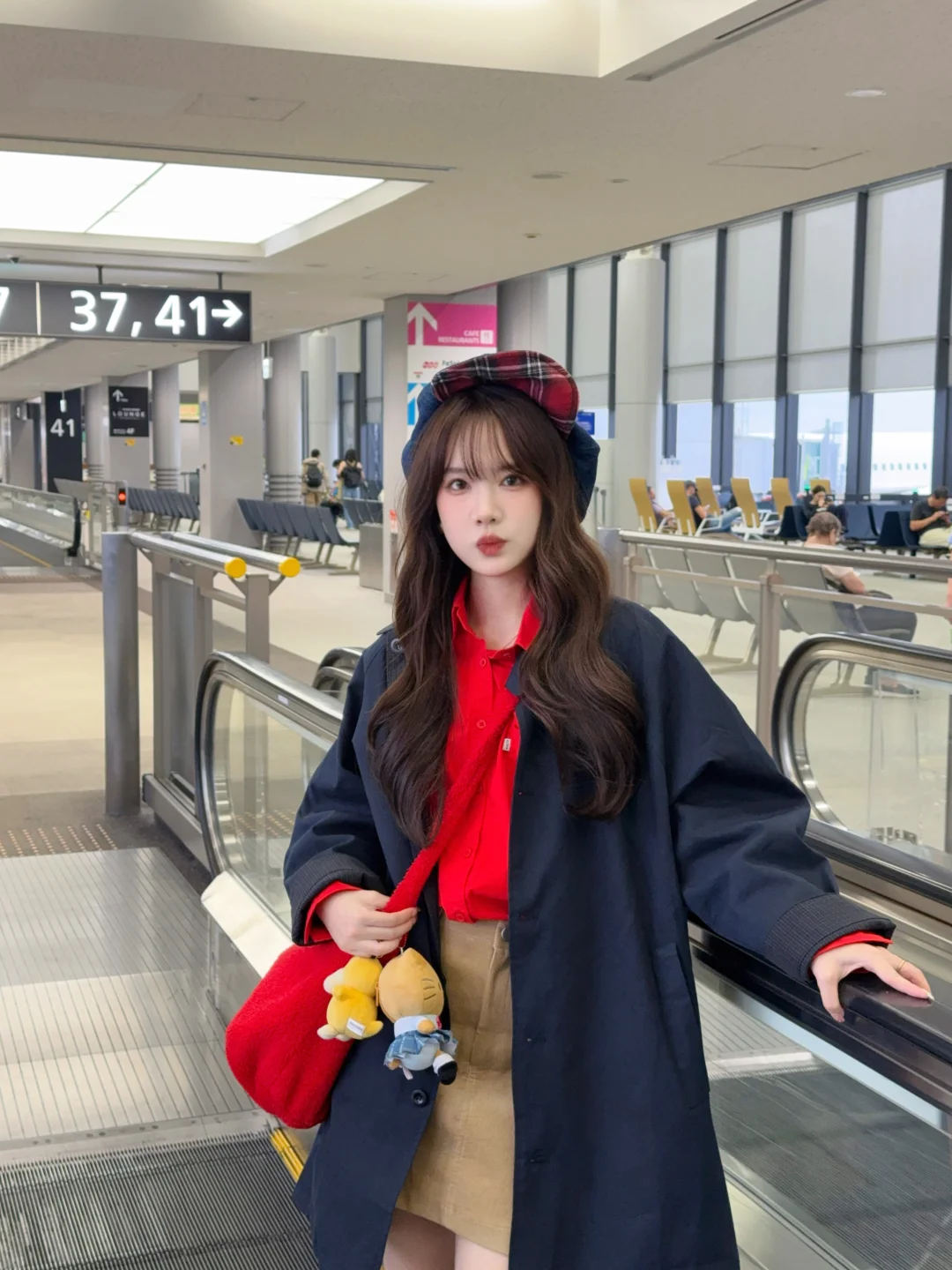 168/106 赶飞机最后一天的机场ootd~ 藏青色风衣➕卡其色下装➕红色衬衫 第一次尝试这种配色 意外亮眼又好看 东京很适合穿红色!! 用小范围的红色作为点缀还蛮有意思的 去古着店看到拉夫劳伦的红色衬衫 感觉和我身上这件差不多🤣 很正很正的大红色 不喜欢这种太亮眼的搭配可以考虑 藏青色风衣➕白色/蓝色衬衫➕卡其色裤子/裙子 或者把卡其色半裙换成棕色系格纹长裙 藏青色搭配米白色白色系的下装也不错 很干净耐看 喜欢更亮眼一点的可以把裙子换成红色半裙! 内搭选择白色或者卡其色~