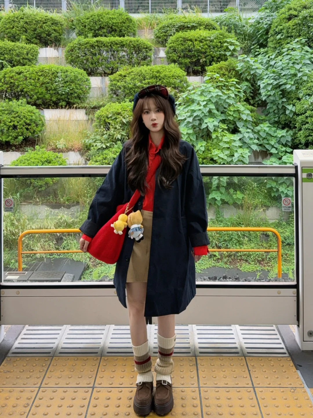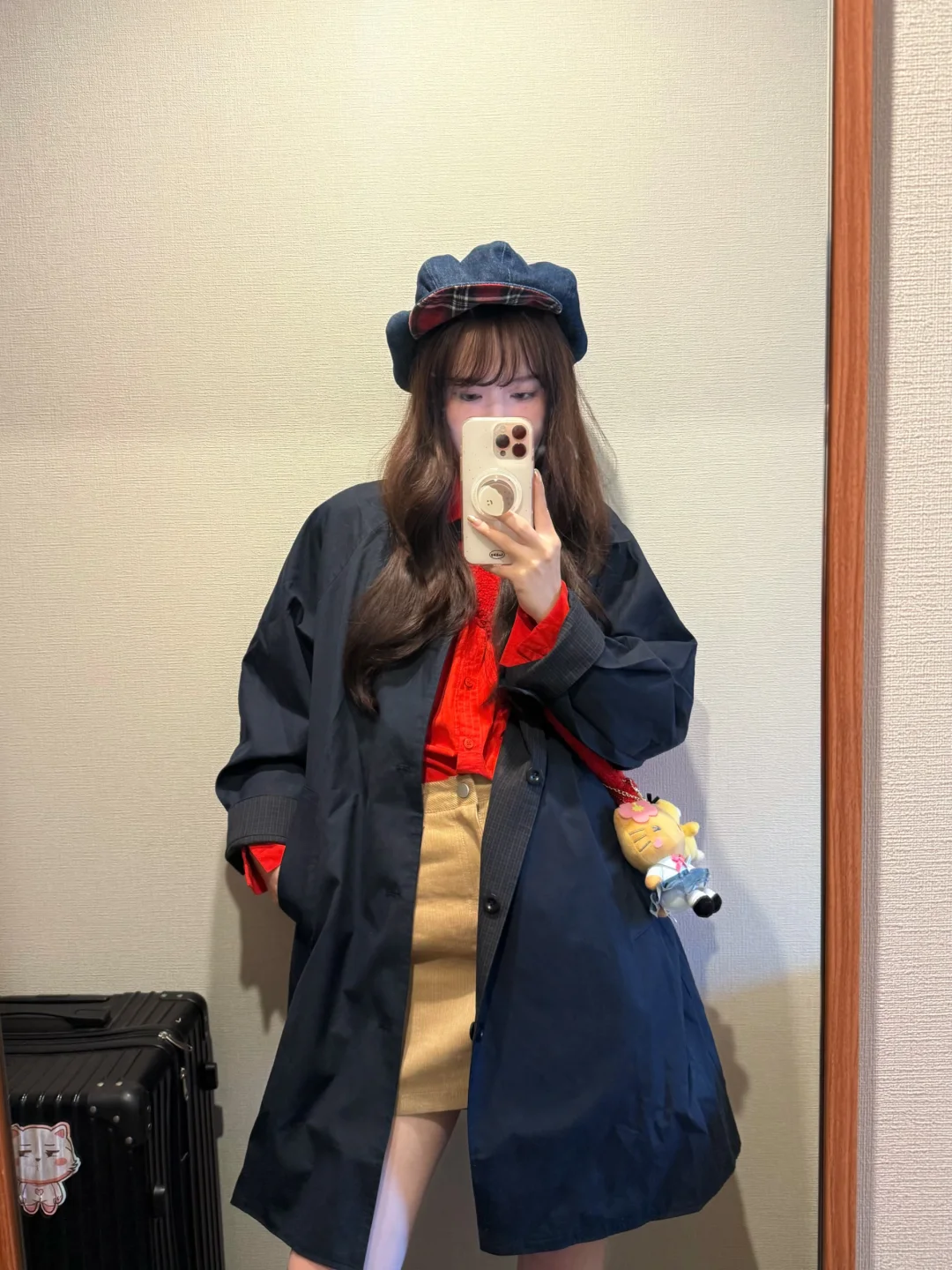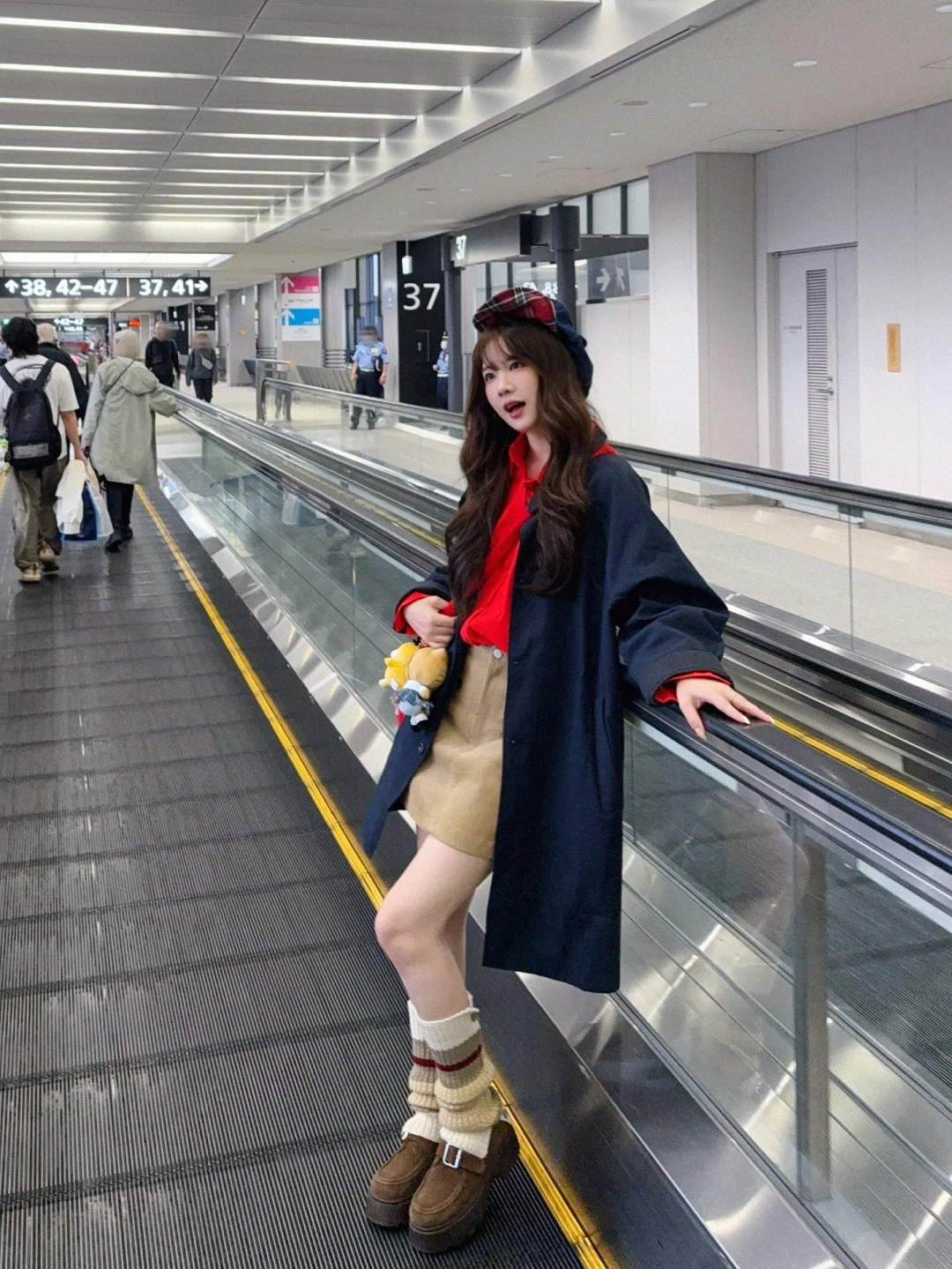 168/106 赶飞机最后一天的机场ootd~ 藏青色风衣➕卡其色下装➕红色衬衫 第一次尝试这种配色 意外亮眼又好看 东京很适合穿红色!! 用小范围的红色作为点缀还蛮有意思的 去古着店看到拉夫劳伦的红色衬衫 感觉和我身上这件差不多🤣 很正很正的大红色 不喜欢这种太亮眼的搭配可以考虑 藏青色风衣➕白色/蓝色衬衫➕卡其色裤子/裙子 或者把卡其色半裙换成棕色系格纹长裙 藏青色搭配米白色白色系的下装也不错 很干净耐看 喜欢更亮眼一点的可以把裙子换成红色半裙! 内搭选择白色或者卡其色~