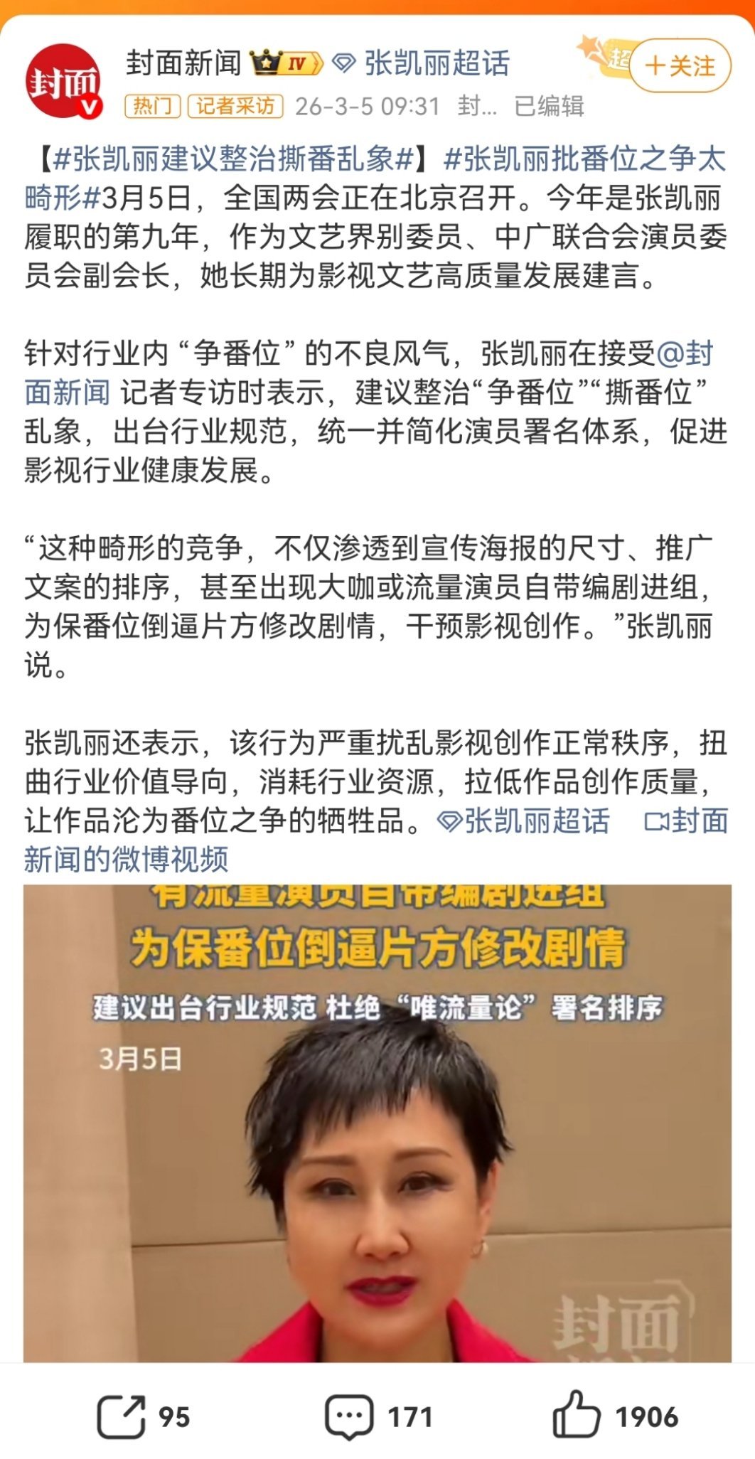 一对比娱乐圈的事真的是无关紧要的小事,感觉张凯丽浪费这个提案机会了,格局小了一点