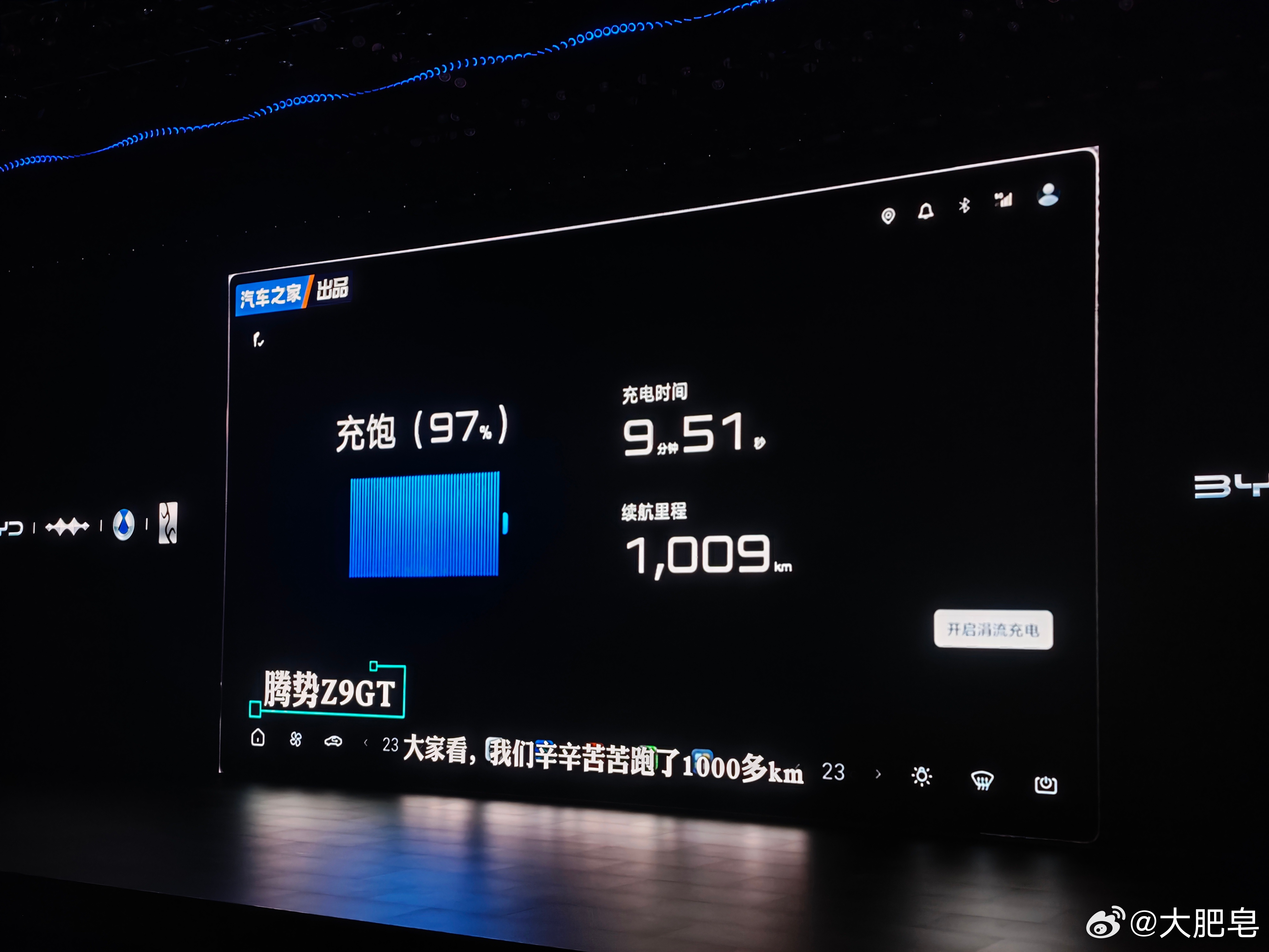腾势Z9GT实现了1036km续航里程……绕海南岛跑一圈还有剩余。充电9分51秒