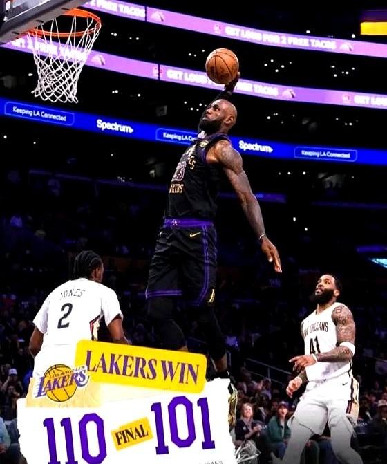 两分球7投7中,外加4次暴扣。这数据不是哪个小年轻的,是41岁的詹姆斯。 主场打鹈鹕,湖人上半场失误连连,最多落后到8分,眼看三连胜就要没了。 末节决战,詹姆斯接管了比赛。他先是关键时刻盖掉锡安,然后带队轰出一波24-7的攻击波,直接逆转。虽然他只拿了21分,但湖人官方赛后海报封面只给了他一个人——一张起飞暴扣的特写。 赛后老詹自己说,赢球靠的是第四节全队7次封盖带来的高强度防守。嘴上夸队友,身体却很诚实地证明了谁才是这支球队的顶梁柱。 永远不要低估一个41岁的老将,尤其当他叫勒布朗·詹姆斯。