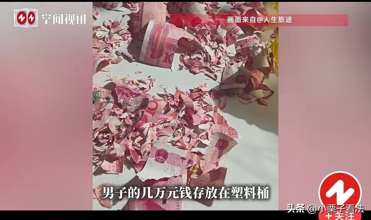 钱碎了心也碎了!云南昭通,男子辛苦打工,攒了几万块钱存放在塑料桶中,想等攒到一定数额在存银行。谁知被老鼠咬破桶壁钻了进去,等他发现时,钱已被咬的粉碎。有1/2的已去银行兑现,剩余的碎片换不掉。男子看到絮了老鼠窝的钱心如刀绞,心疼的整夜睡着觉,想死的心都有!网友:愚昧无知害了自己,几年的辛苦打了水漂! 张先生住在大山里,靠着外出打工挣钱,日子过得省吃俭用,一分钱都舍不得乱花。 他平时也攒不下几个钱,更没存钱的经验,也总觉得跑银行麻烦,心里想着先把钱攒在手里,等凑够一定数额再一起存进银行。 他辛苦地干活,日积月累的好不容易攒下几万块钱现金,看着钱就踏实,于是,他整了个塑料桶,把钱整整齐齐放了进去。 他盖好了盖子,自认为这样既防潮又安全,谁也想不到,一场灾难正悄悄等着他。 日子一天天过去,张先生依旧在外奔波劳累,虽赚的不多,但他心里有底。 这几万块就是全部的底气,是往后生活的指望,有个为难遭灾的心里不怕。 这笔钱不是大风刮来的,是他顶着日晒雨淋、起早贪黑干重活,一点点熬出来的血汗钱,每一张纸币上,都沾着他的汗水和疲惫。 可他万万没料到,看似严实的塑料桶,根本挡不住老鼠。 老鼠凭着尖利的牙齿,硬生生咬破了桶壁,钻到了桶里。 这些现金在老鼠眼里,不过是做窝的好材料,它们疯狂地啃咬、撕扯,把一张张完好的纸币咬得粉碎,还把碎钱絮成了暖和的老鼠窝。 等张先生发现时,眼前的景象让他瞬间僵在原地,大脑一片空白。 曾经叠得整整齐齐的几万块钱,此刻已经面目全非,满桶都是碎纸片,有的成了细絮,有的残缺不全,和老鼠窝缠在一起,看得人头皮发麻。 他蹲在地上,看着这堆再也拼不回原样的碎钱,心脏像是被一只手狠狠攥住,疼得喘不过气。 那一瞬间,他连想死的心都有了,几年的辛苦、无数个日夜的劳累,就这么毁在了老鼠嘴里,所有的期盼和希望,跟着碎钱一起化为乌有。 缓过神后,张先生抱着一丝希望,把还能辨认的碎钱一点点捡起来、整理好,颤颤巍巍地拿到银行去兑换。 银行工作人员尽力帮忙,能识别、能拼接的部分都按规定兑换了,可算下来,也只有差不多一半的钱能换回现金。 剩下的那些碎得不成样子、无法辨认面额和完整性的纸币,按照规定根本没办法兑换,只能眼睁睁当成废纸扔掉。 从银行回来之后,男子彻底陷入了无尽的自责和痛苦里。 只要一想起那些被老鼠啃烂的血汗钱,他的心就像被刀割一样疼,整夜整夜地睁着眼睡不着觉,整个人都被绝望笼罩着。 他恨自己的粗心,恨自己图方便不把钱存进银行,更心疼那些付诸东流的辛苦钱。 这件事传到网上后,很多网友都替他感到惋惜,说他太奇葩了,现在哪有把钱放家里的人,太愚昧无知! 明明把钱存银行既安全又有保障,就是放卡上也比放家里强啊,太傻了!最终让几年的辛苦打了水漂。 有人说,小小老鼠太可恶,不仅爱大米,还爱人 民币。所以在家存放钱一定要谨慎,如果放在铁盒里,就不会被老鼠咬了呢? 有人说,不用急,拿去银行和同等额度的人民币称重,该换多少就换多少! 《中国人民银行残缺污损人民币兑换办法》 第4条:残缺、污损人民币兑换分“全额”“半额”两种情况。 (一)能辨别面额,票面剩余3/4以上,其图案、文字能按原样连接的残缺、污损人民币,金融机构应向持有人按原面额全额兑换。 (二)能辨别面额,票面剩余1/2至3/4以下,其图案、文字能按原样连接的残缺、污损人民币,金融机构应向持有人按原面额的一半兑换。 对于搅碎的纸币,也必须遵循这个原则。 如可拼接起来,而且能确保是同一张的,也可以兑换。 张先生剩余现金被老鼠啃成纸絮、无法辨别面额、无法完整拼接、剩余面积远不足1/2,同时不满足“全额/半额兑换”的法定条件,银行有权不予兑换,且无需承担赔偿责任。 有人说那就称重去银行兑换,那是不行的。因这种方式没法鉴定真伪,面额与完整性,银行不得采用,该主张不具有法律效力,不现实。 可只有男子自己知道,这几万块钱里,藏着他多少不易和心酸。 钱碎了可以慢慢再赚,可心里的疼,却要很久才能平复。 这也给所有人提了个醒,辛苦攒下的钱,一定要存进正规银行,别让一时的疏忽,毁掉自己全部的心血。 对此您怎么看?