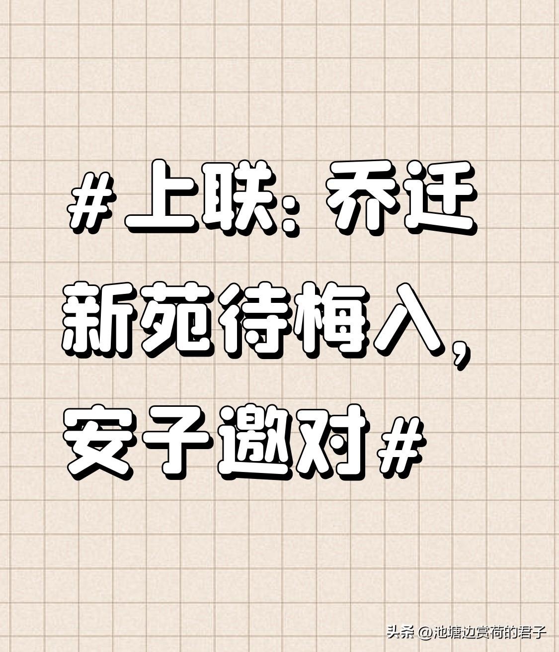 看到“乔迁新苑待梅入”这个上联,感觉特别有意境。乔迁新宅本就是喜事,还等着梅花来增添雅趣。我来对个下联“喜住佳居迎鹤临”。“喜住佳居”对应“乔迁新苑”,都体现了入住新宅的喜悦;“迎鹤临”对“待梅入”,鹤在中国文化里也是吉祥的象征,和梅花一样能为新宅带来祥瑞。乔迁时贴上这样一副对联,既应景又寓意美好,就像整理好的那些乔迁对联一样,给新家增添喜庆氛围。